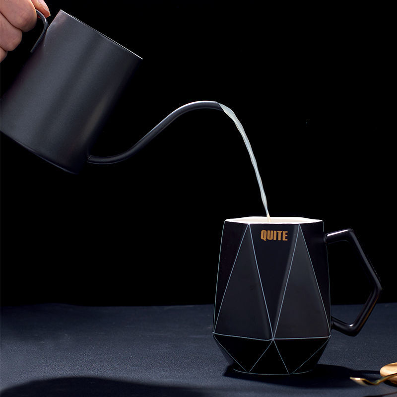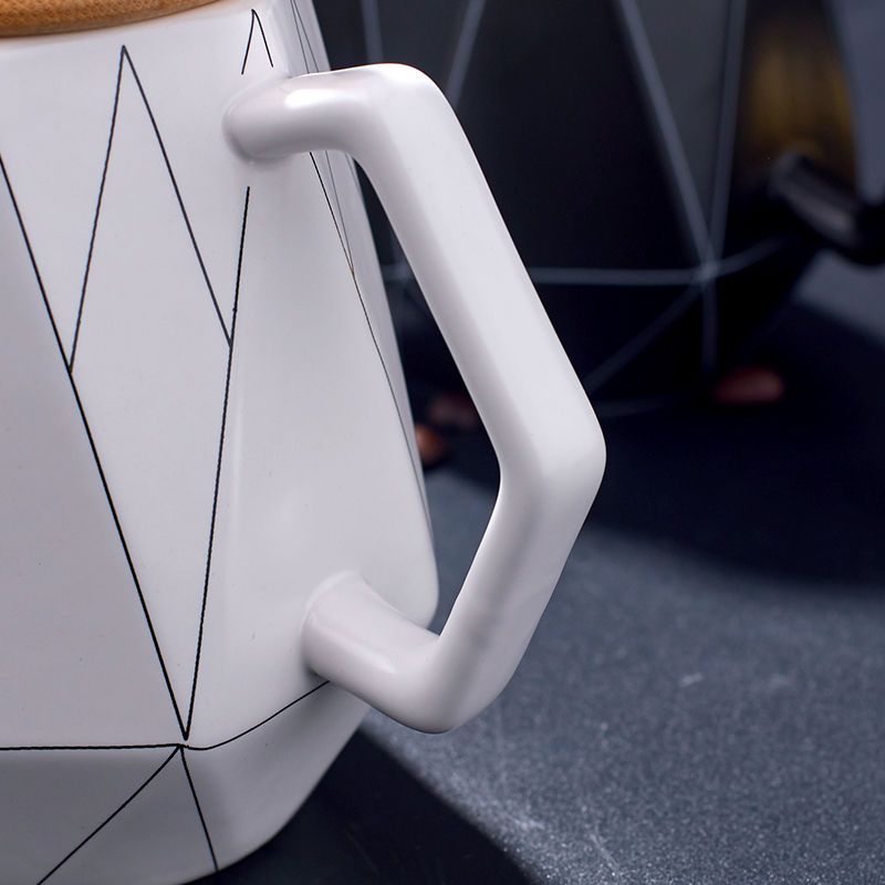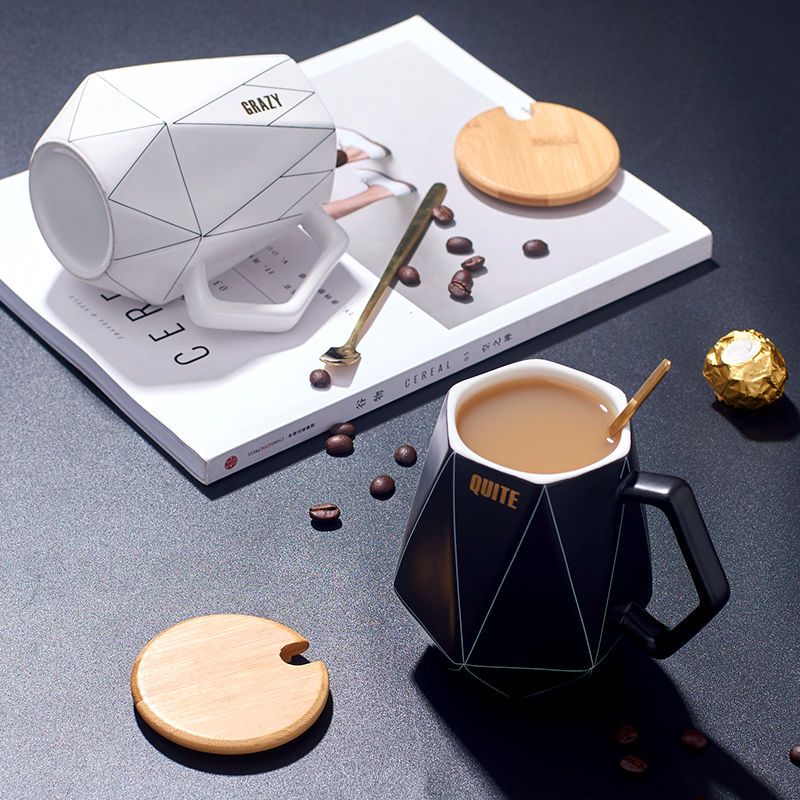 Geometric minimal ceramic cup with covered spoonMark Cup office coffee cup for boys and girls European-style couple cup