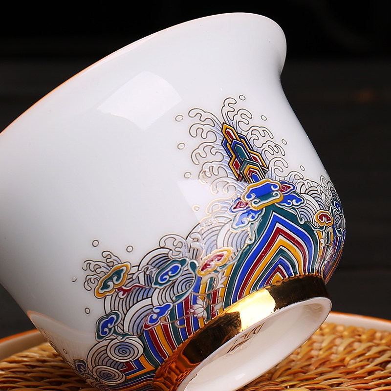 Waves Jade White Lid Bowl Waves Jade White Lid Bowl with tea Waves Jade White Lid Bowl with Kettle Bearing Wave Jade White Lid Bowl with Bamboo Kettle Bearing Wave Jade White Large Bowl Cup Waves Jade White Wide Mouth Cup Waves Jade White Male
