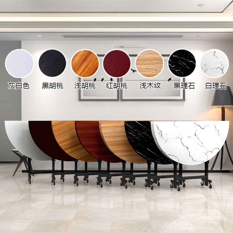 Household folding table Simple movable round dining table Hotel glass turntable Large round desktop 10 people dining table