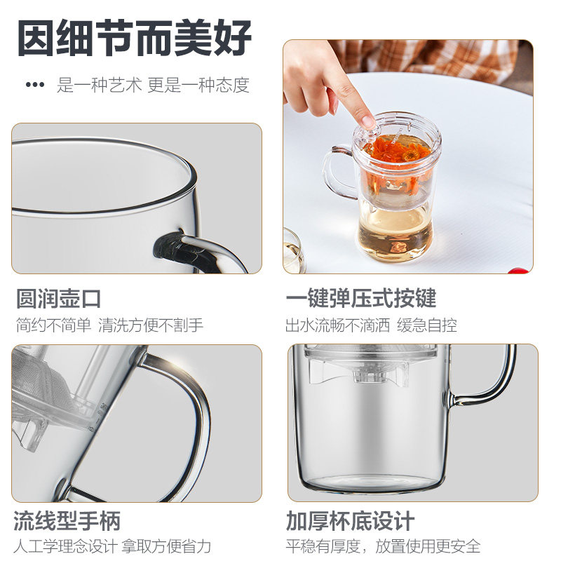Mingzun S001 Elegant cup tea pot Office creative single cup tea cup Filter glass water cup Household