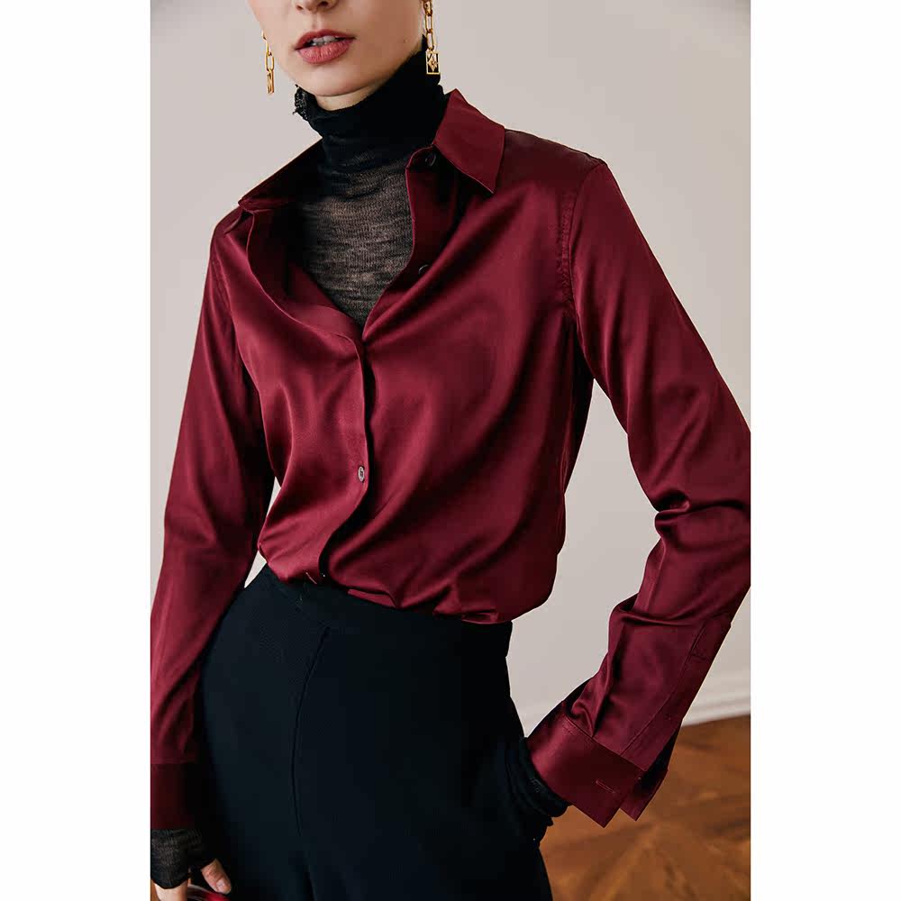 Ochi National Early Spring Real Silk Shirt Woman Long Sleeve 2022 New 5 Color Mulberry Silk Blouse Spring Autumn Shirt