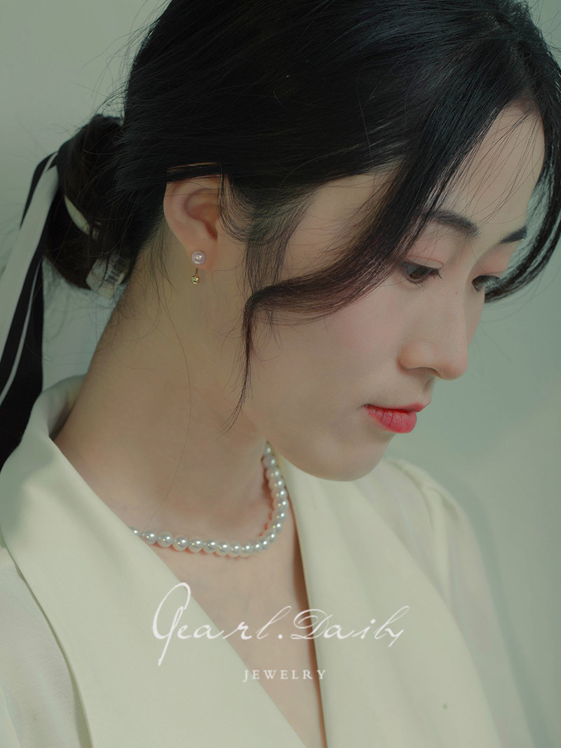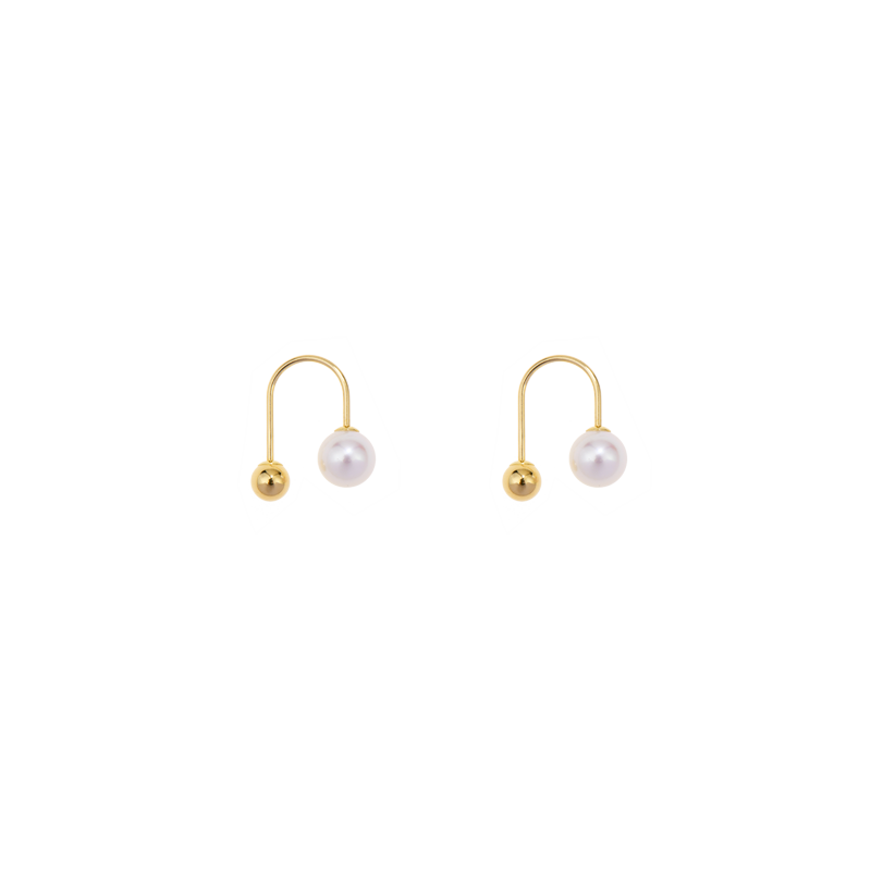 Wear 18K gold rotating earrings with Japanese pearl earrings with minimal temperament and gift