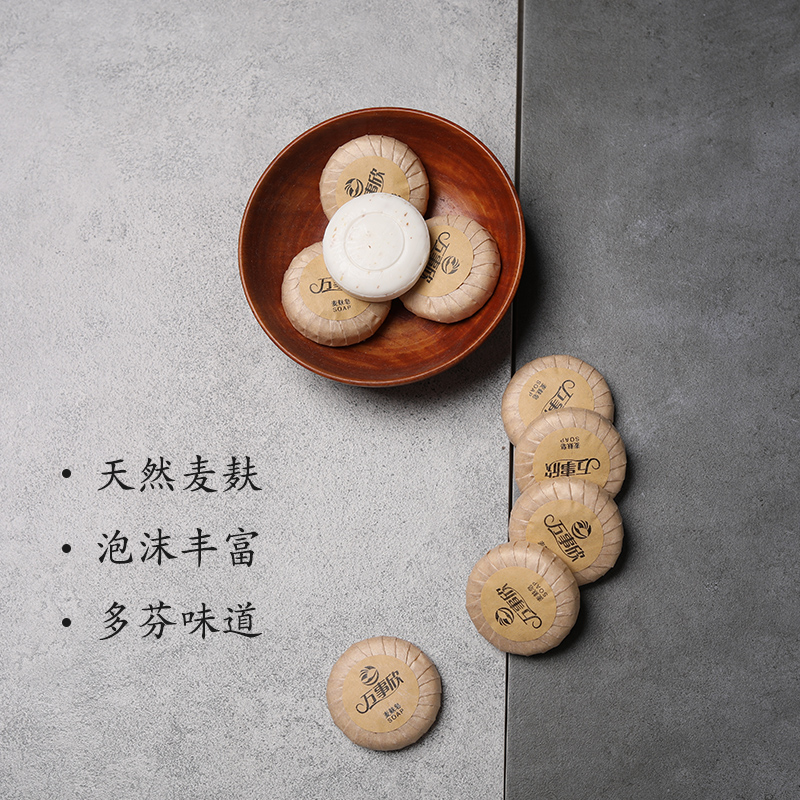 Hotel Suite Guesthouse Kraft paper packs disposable soap 15 grams of round wheat bran soap toiletries