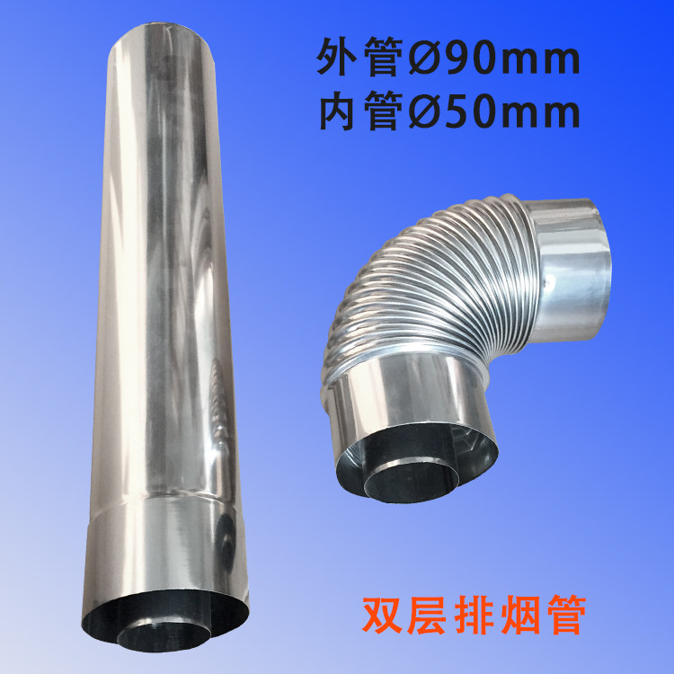 Outer diameter 90mm inner diameter 50mm double layer stainless steel smoke exhaust pipe wall hanging stove exhaust pipe balanced chimney out of wall pipe