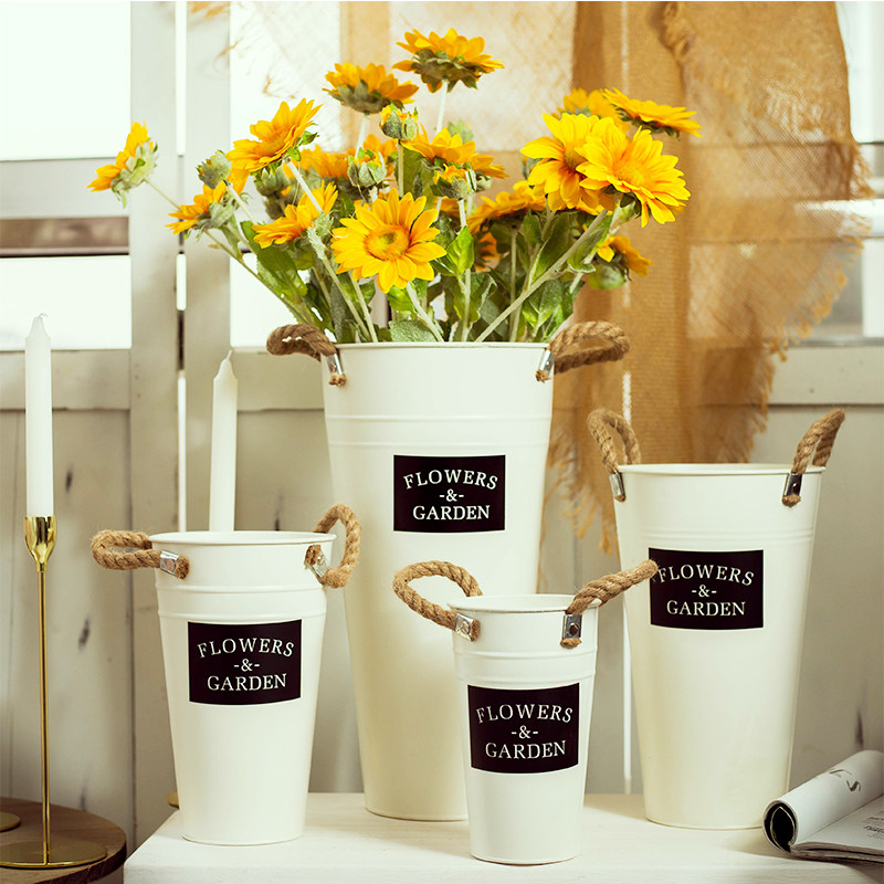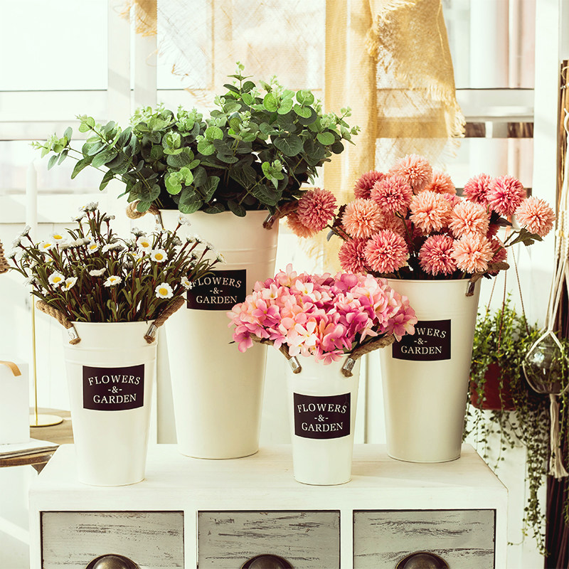Pastoral dry flower bucket flowers flower bucket tin bucket wake flower bucket flower shop decoration flower pot home living room flower arrangement flower tube