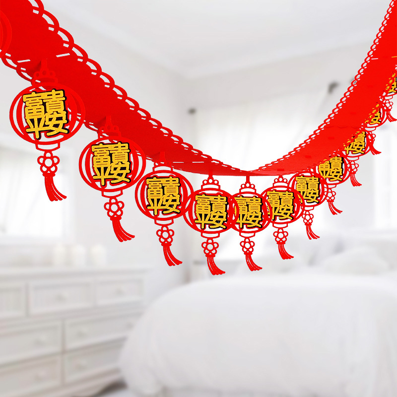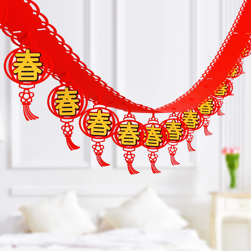 New Year Spring Festival non-woven three-dimensional stickers Jin Chun Word pull flag Blessing word pull flower Indoor hanging decoration decoration supplies