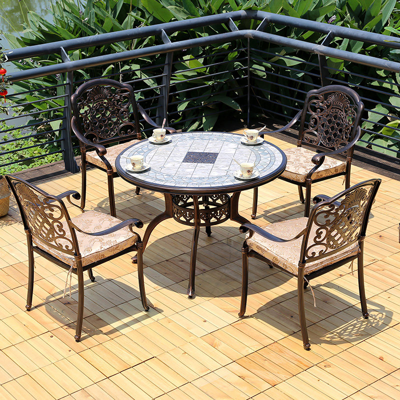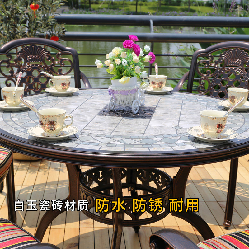 European-style furniture Cast aluminum outdoor marble table and chair outdoor courtyard roof garden iron art leisure villa garden