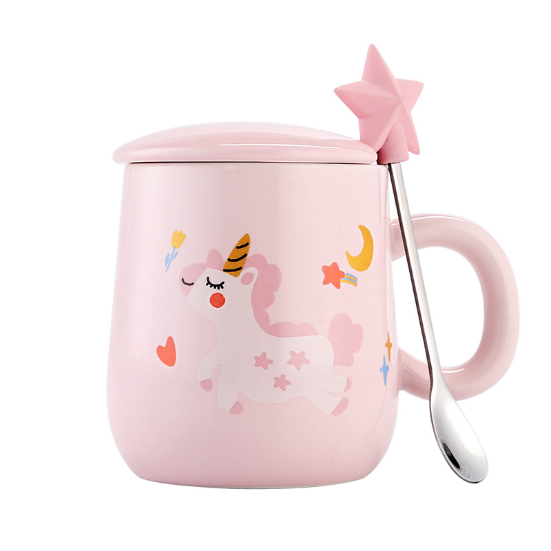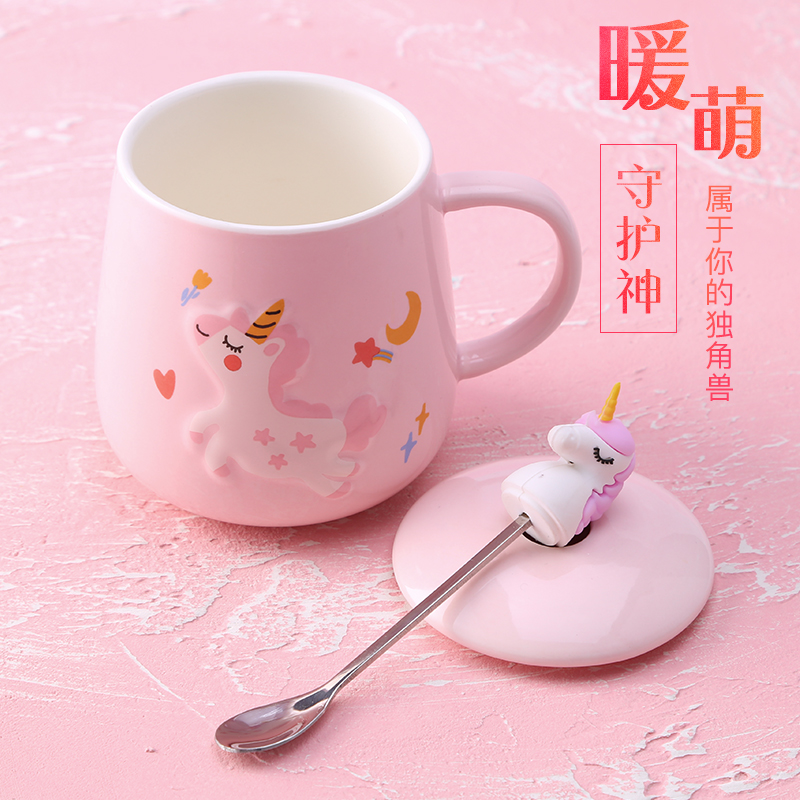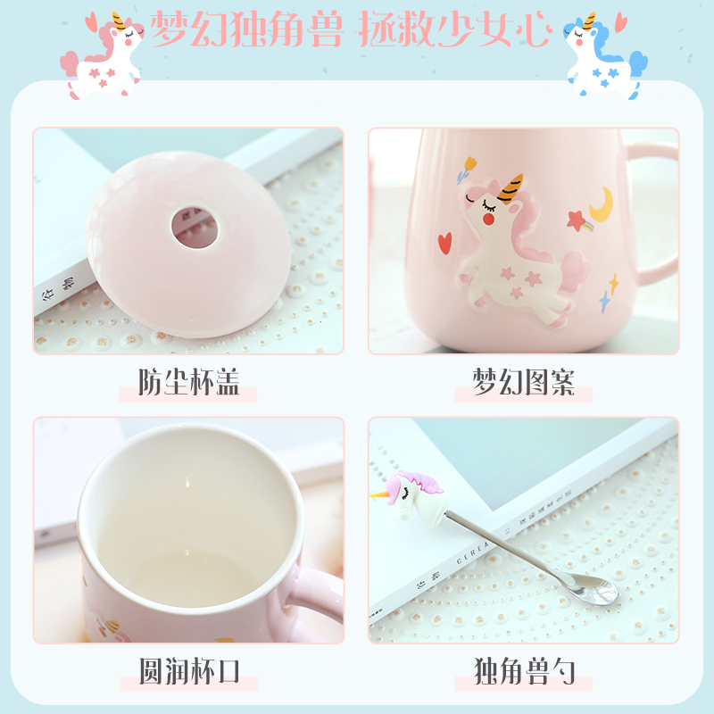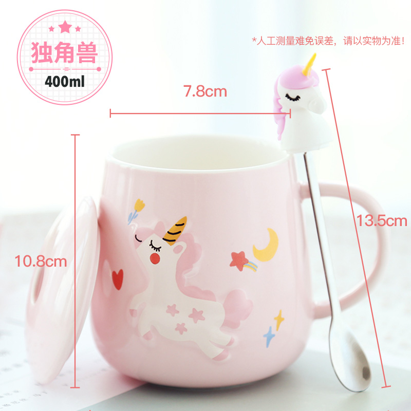 Super cute unicorn Ceramic mug with lid spoon coffee Cute water cup Couple creative girl New Year gift