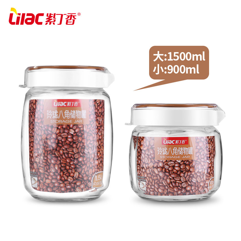 Lilac glass exquisite octagonal storage jar with lid sealed bottle dried fruit grains sealed jar moisture-proof storage bottle