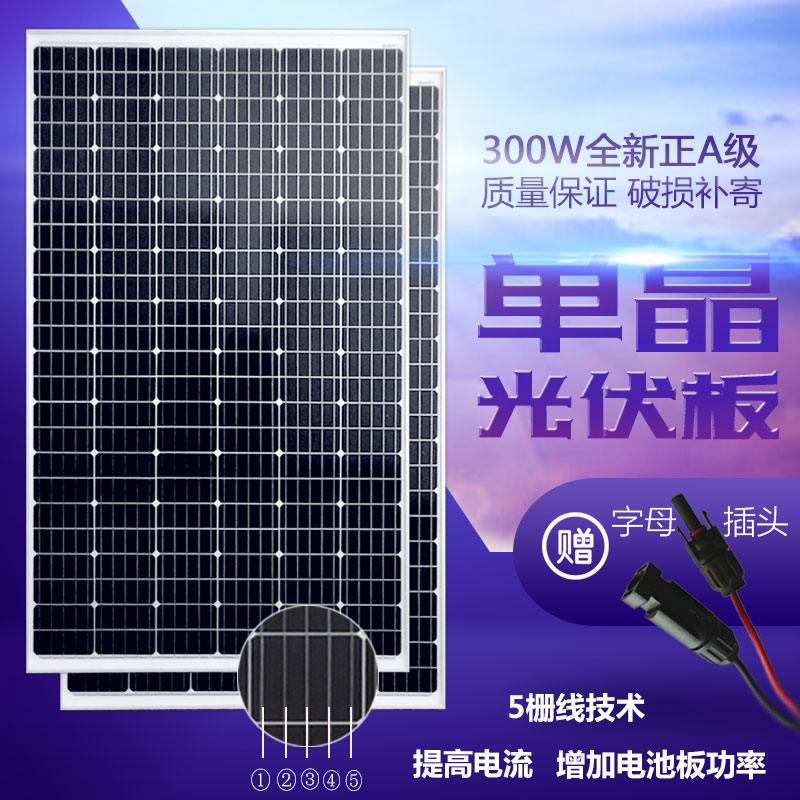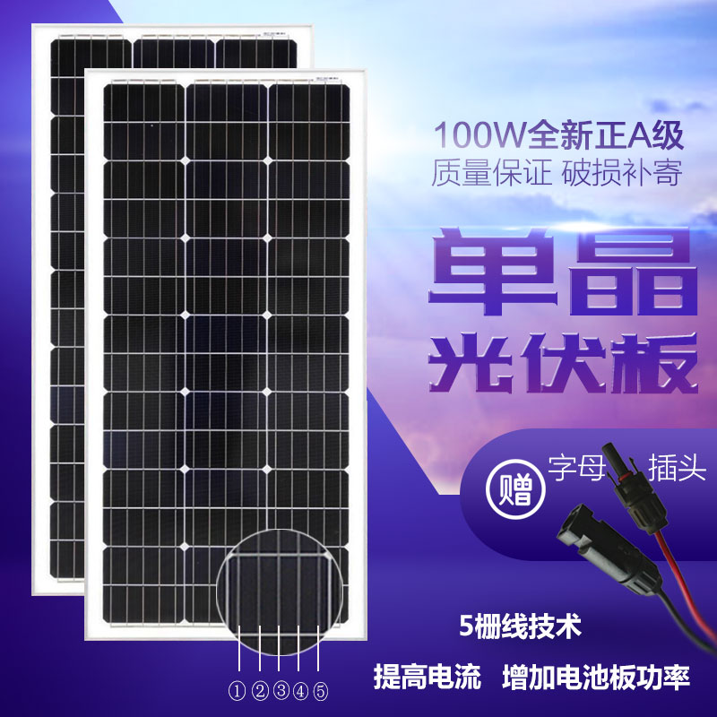 Monocrystalline silicon solar panel 30W50W80W100W300W power generation board 12V battery direct charging household photovoltaic panel