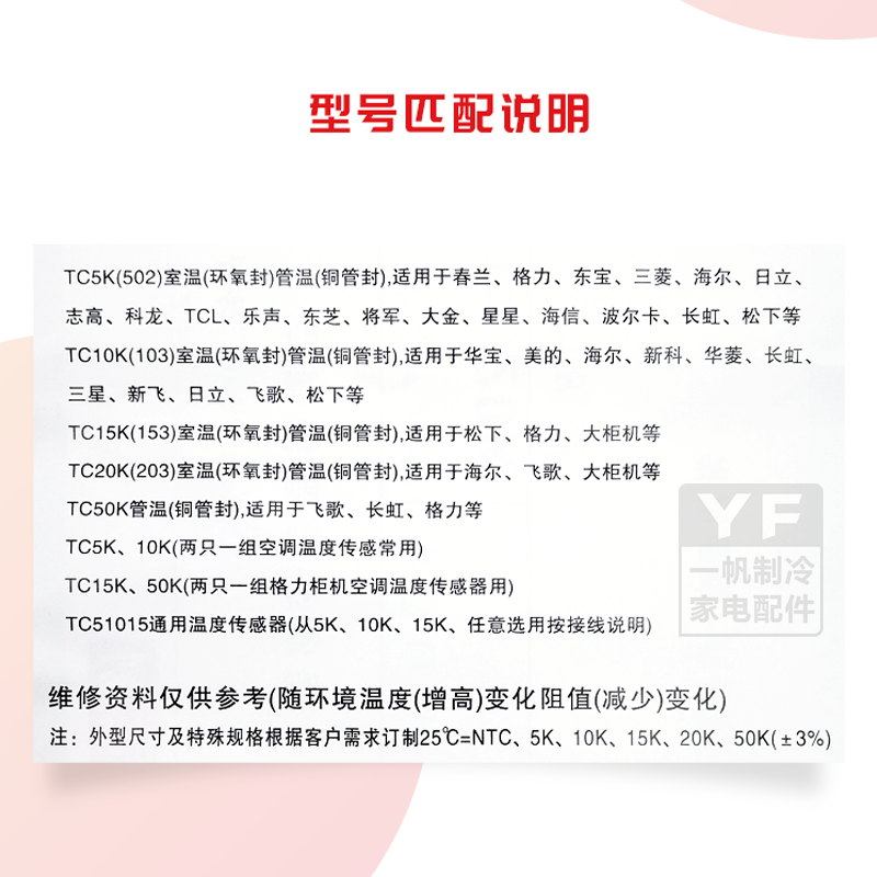 Air Conditioning Special Temperature Sensor Glue Copper Head Induction Monitor Thermo-Sensitive Tube temperature Tube 5 10 15 20 50K
