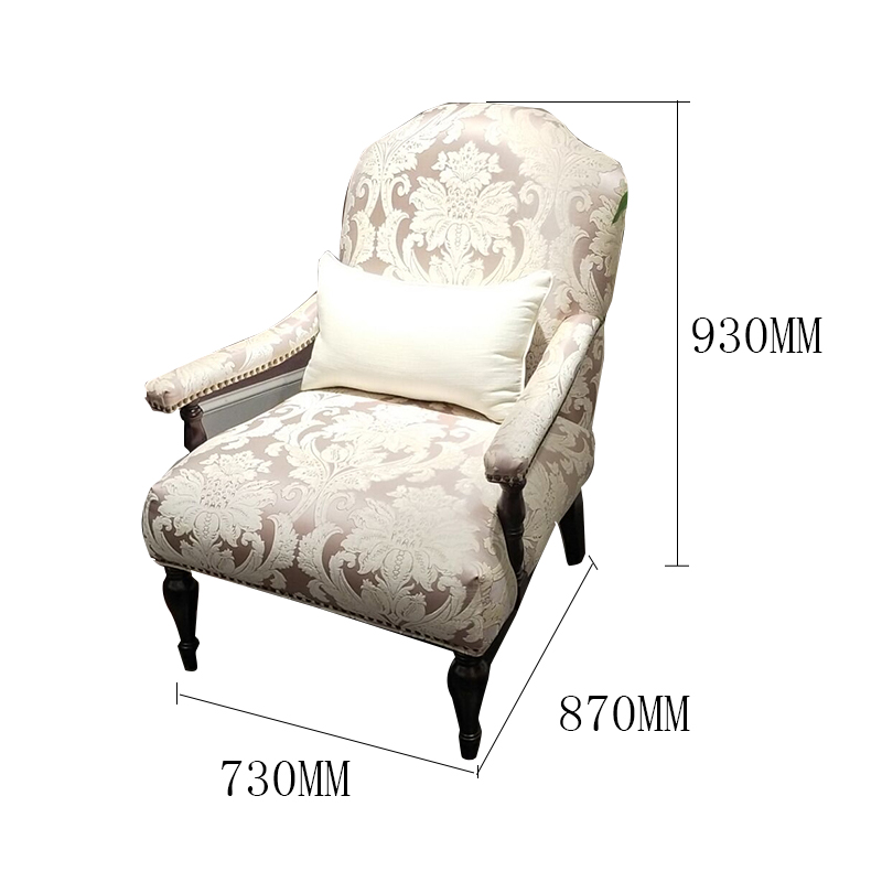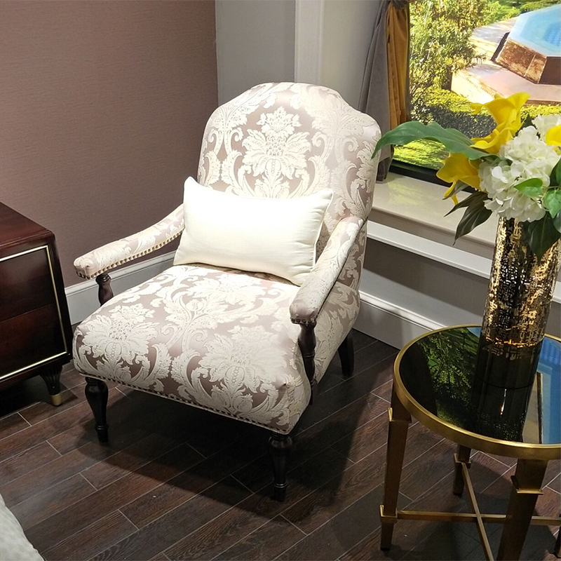 Modern American light luxury fabric leisure chair wooden sofa large villa bedroom living room single sofa 70 cm