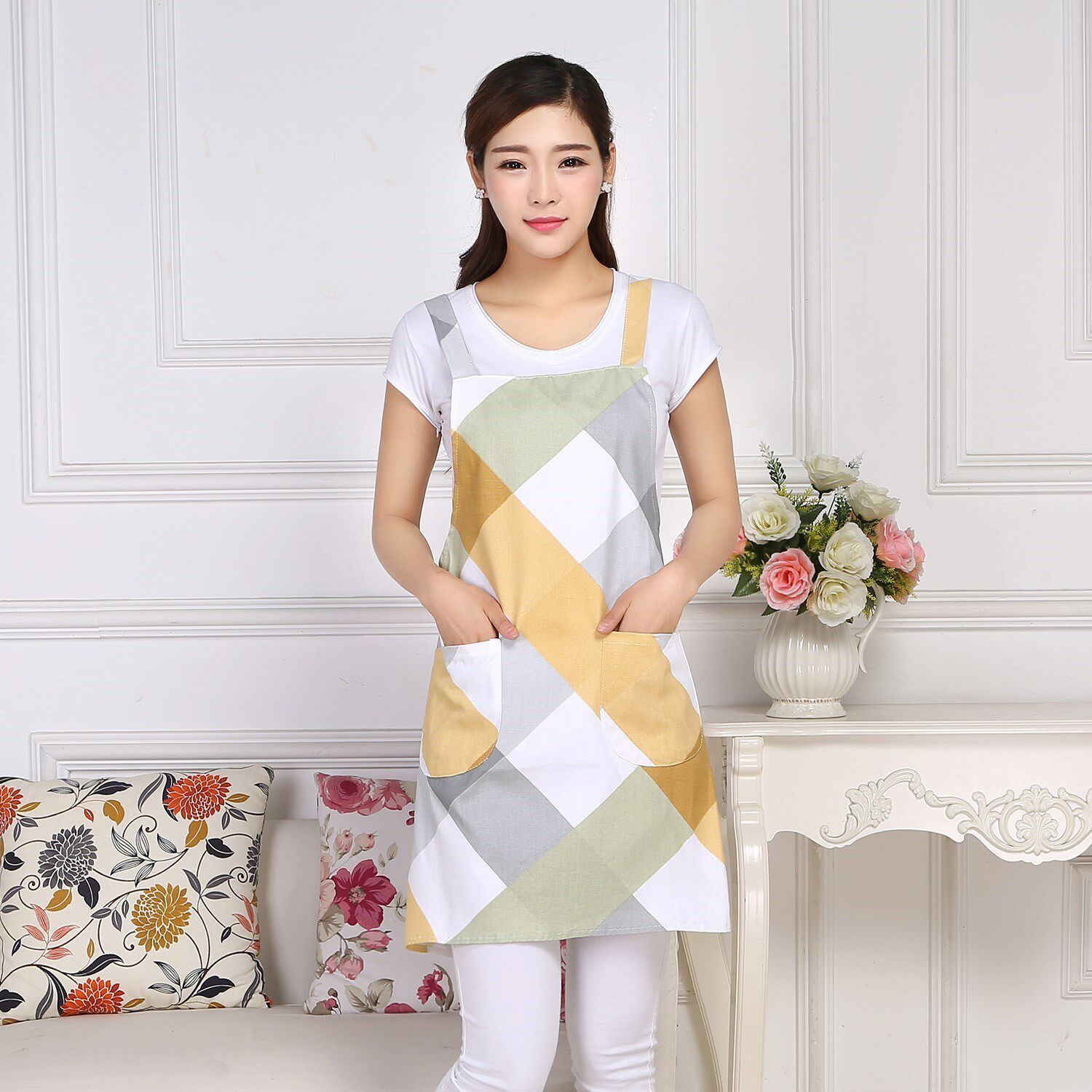 Flower - apron diamond - apron gray grid - apron powder grid - apron