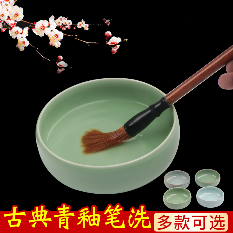 Wei Zhuang Ceramic Size Round Pen Washing Basin Antique Ink Pool Study Four Treasures Set Brush Chinese Painting and Calligraphy Supplies Ink Plate Washing Pen Cylinder - Taobao
