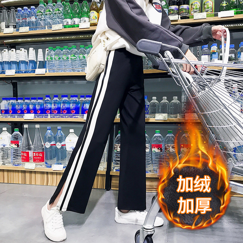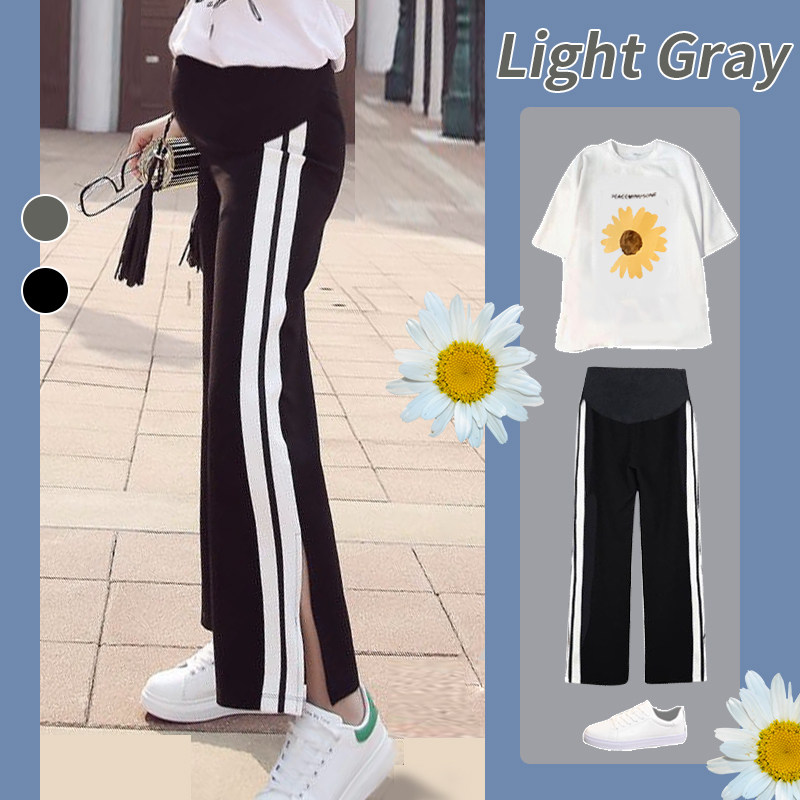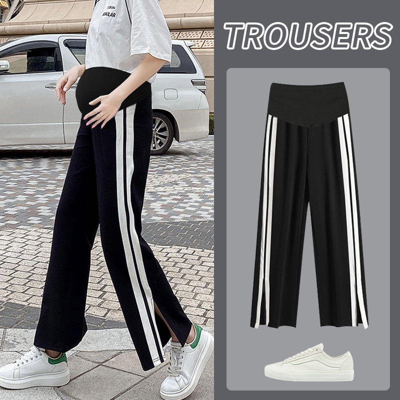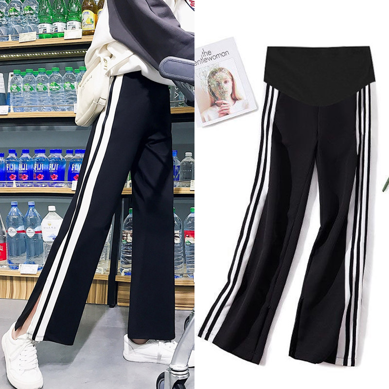 Black and white split-wide leg pants spring and summer Pink strip-wide leg pants spring and summer ins small daisy White black and white split pants back Doll white white split wide leg back