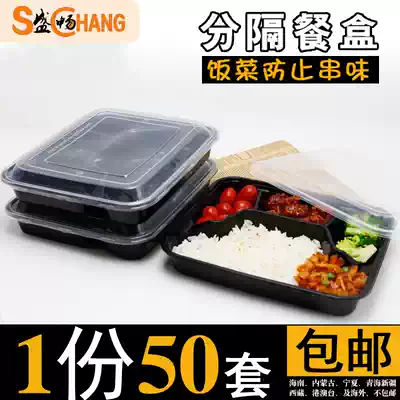 Disposable delivery packing box Square four-grid lunch box three-grid two-grid business package box five-grid black lunch box
