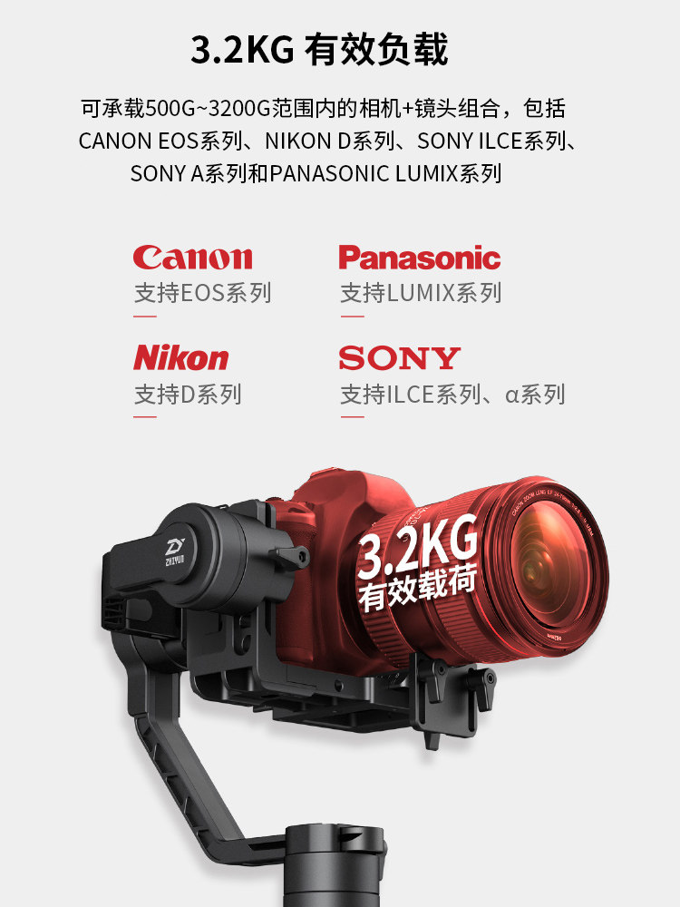 ZHIYUN Yunhe 2 SLR camera Handheld stabilizer Micro-SLR camera Canon Sony Kang live shooting vlog video Follow focus camera Vertical shooting image stabilization Three-axis gimbal photography Yunhe 2S