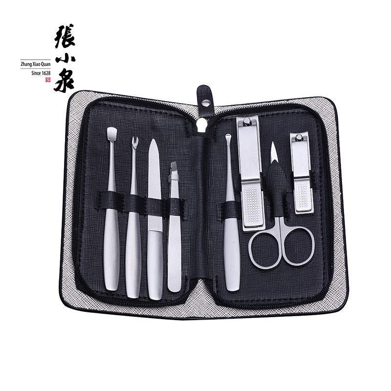 Zhang Xiaoquan black bag nail set nail clippers nose hair scissors ear scoop dead skin shovel beauty scissors eyebrow forceps 8-piece set