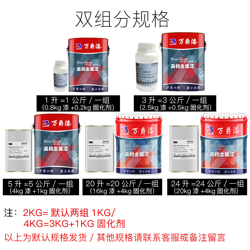 1kg=0.8kg paint + 0.2kg curing agent3kg=2.5kg paint + 0.5kg curing agent5kg=4kg paint +1kg curing agent20kg=16kg paint +4kg curing agent24kg=20kg paint +4kg curing agent