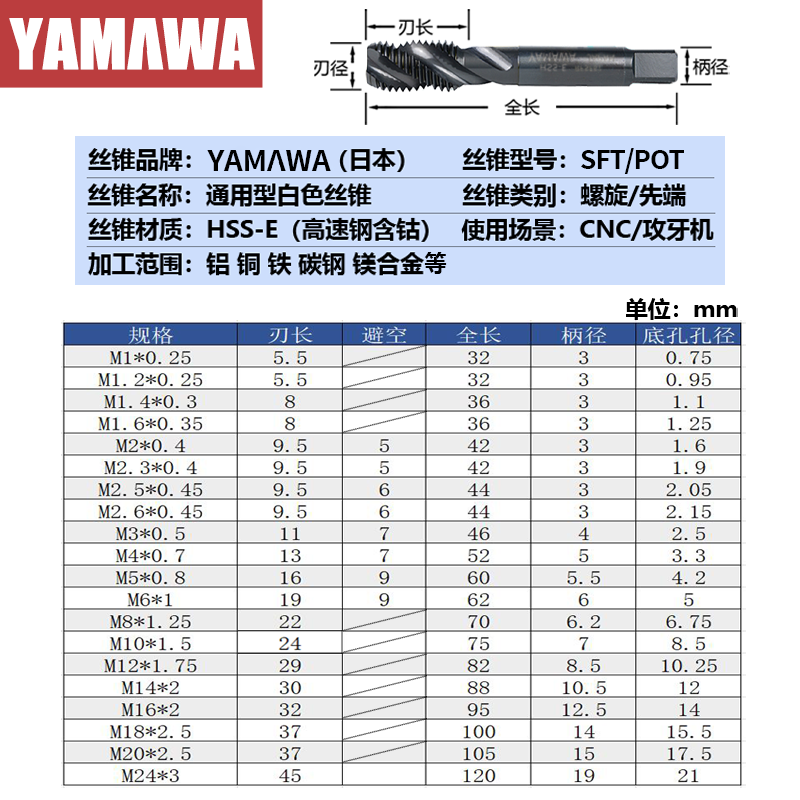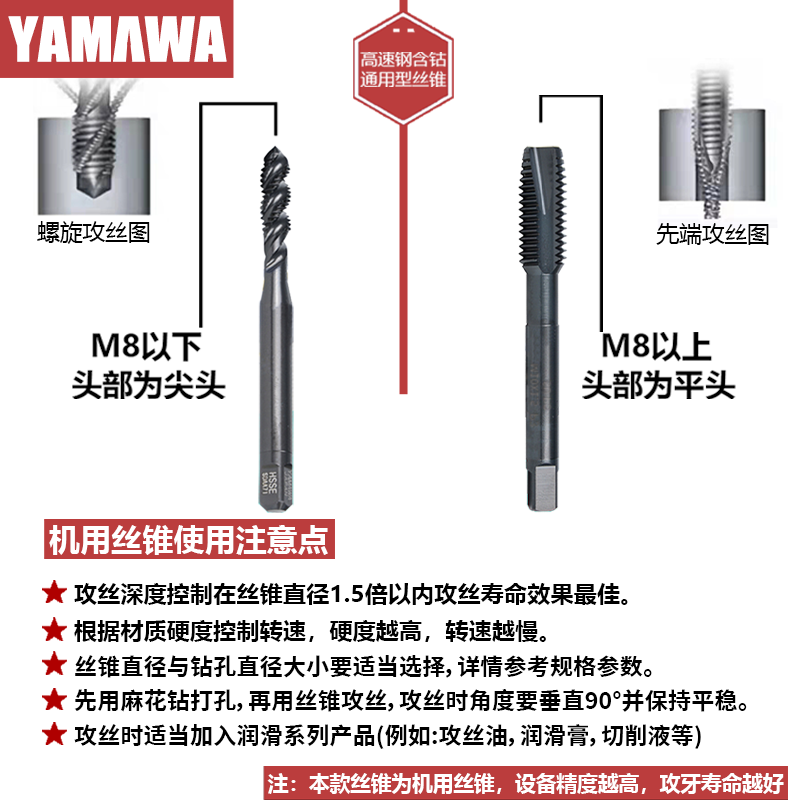 YAMAWA Japan imported spiral taper containing cobalt nitride coating M2m3m4m5 stainless steel with a first - end filament attack