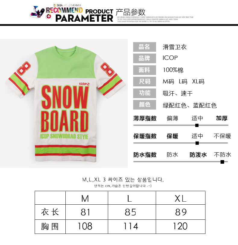 ICOP New Letter Ice Cream Color Ski Pure Cotton Sweater T-shirt Short Sleeve Sleeve Five Points