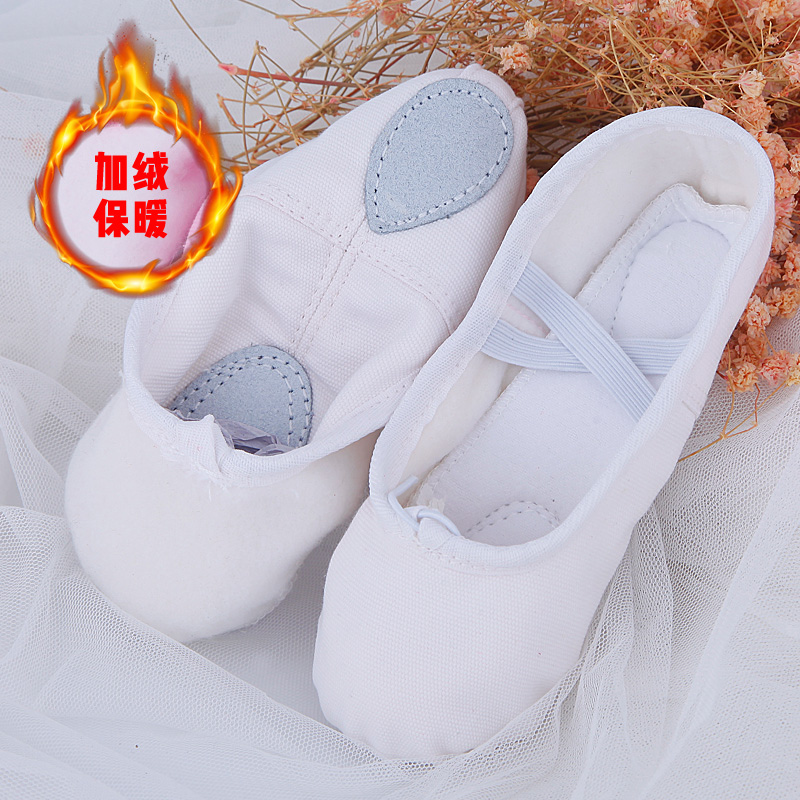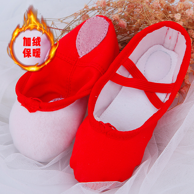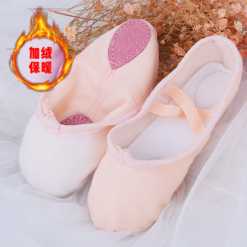 Single Apricot Plus Suede Warm Dancing Shoes Winter Children Dancing Shoes Canvas Cat Paw Shoes Ballet Dancer Soft Bottom