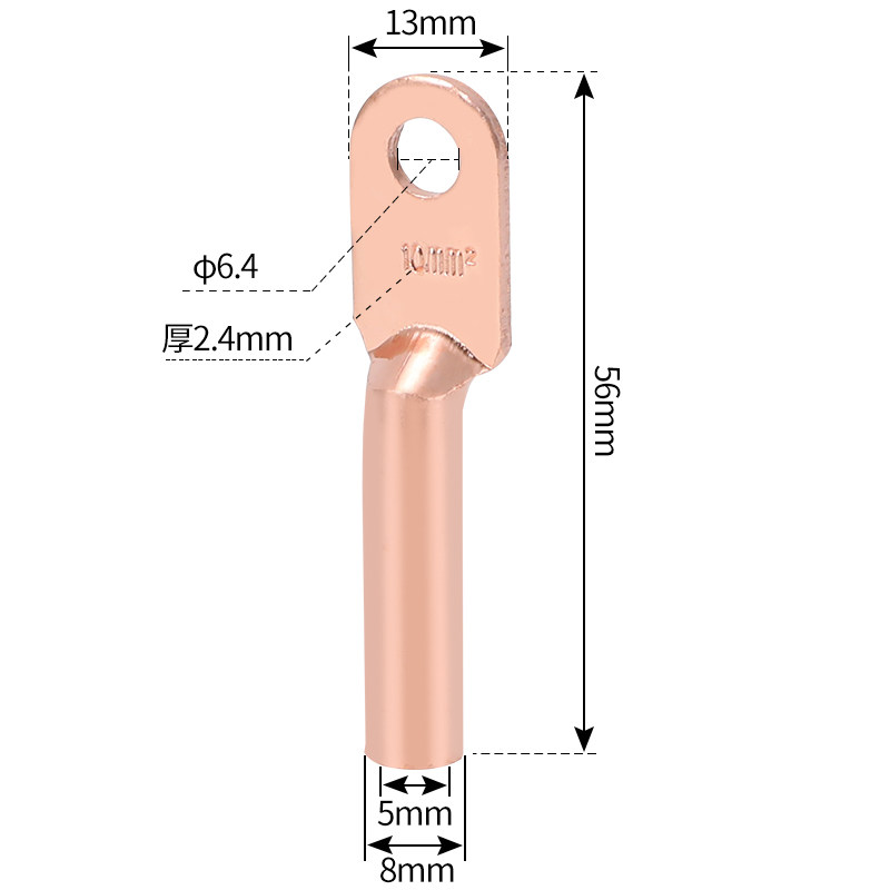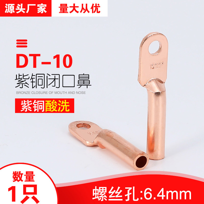 DT-10 square T2 copper national standard closed copper terminal wire ear chain nose cold-pressed terminal pickling block oil