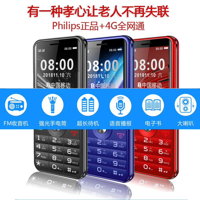 Philips Philips Seniors Machine Big Screen Big Words Louder 4G Total Netcom Geriatric Machine Extra-long Standby Straight Plate Buttons Seniors Mobile Phone Push-to-dial Students Spare Feature Little Phone