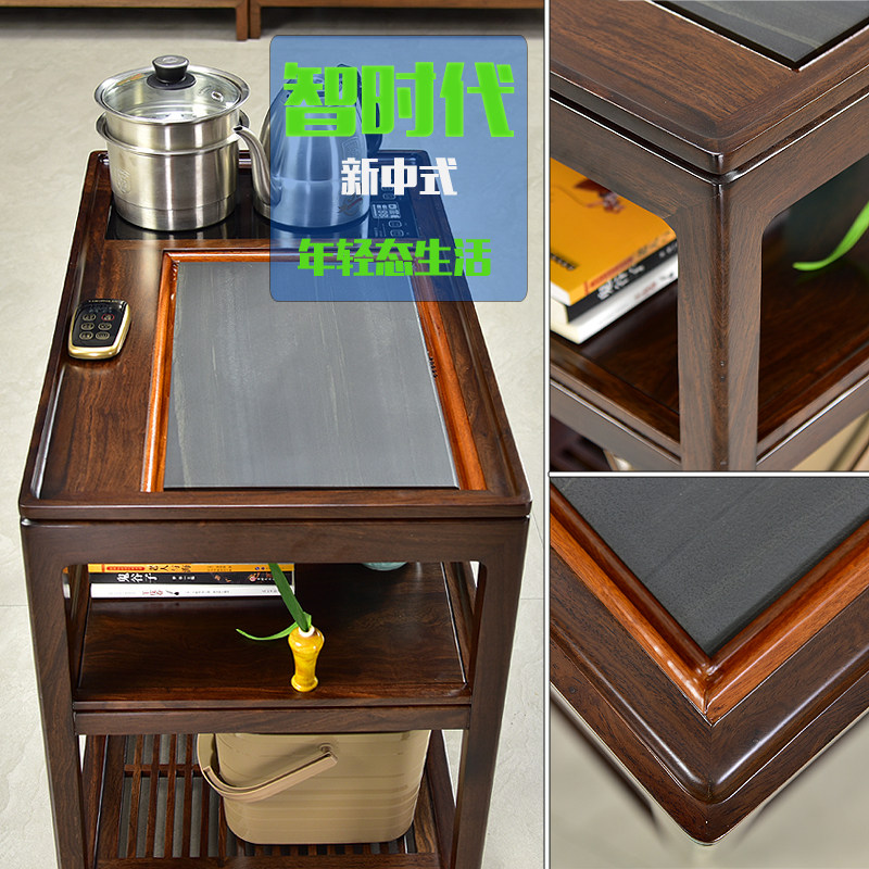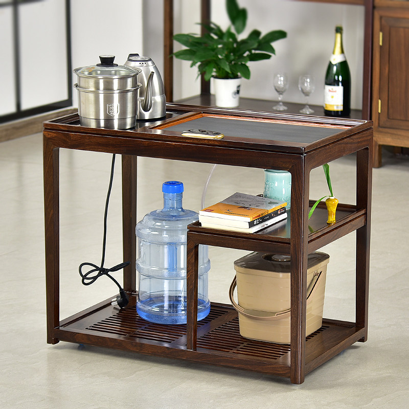 Black red sandalwood movable tea cart tea table all solid wood Wujinshi home balcony small tea table new Chinese sofa side cabinet