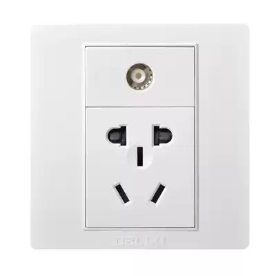 Deli west wall switch socket 86 type cable TV panel five-hole power outlet closed-circuit TV5 hole white