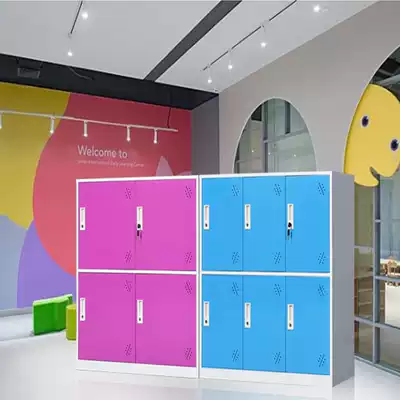 Student classroom bookcase with lock iron sheet short cabinet kindergarten primary school water cup cabinet multi-door small Grid staff storage cabinet