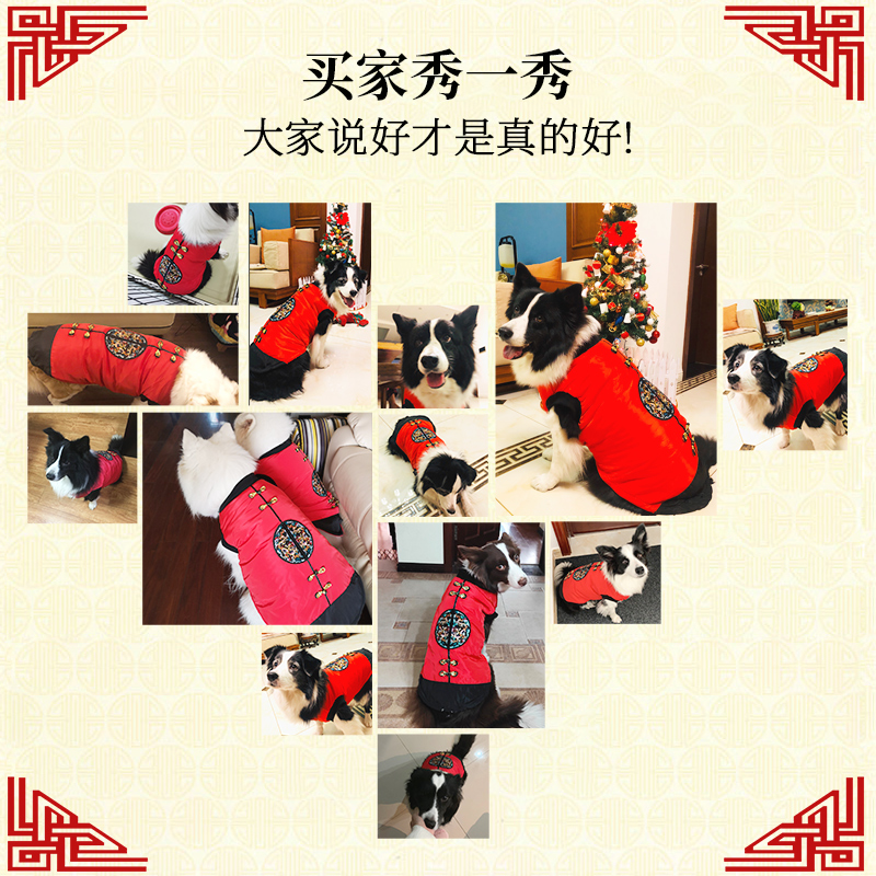 Dog Tang Dress Cotton Clothes Samo Golden Hair Big Dog Clothes Border Collie Big Dog Fall/Winter Warm New Year Cotton Coat Vest