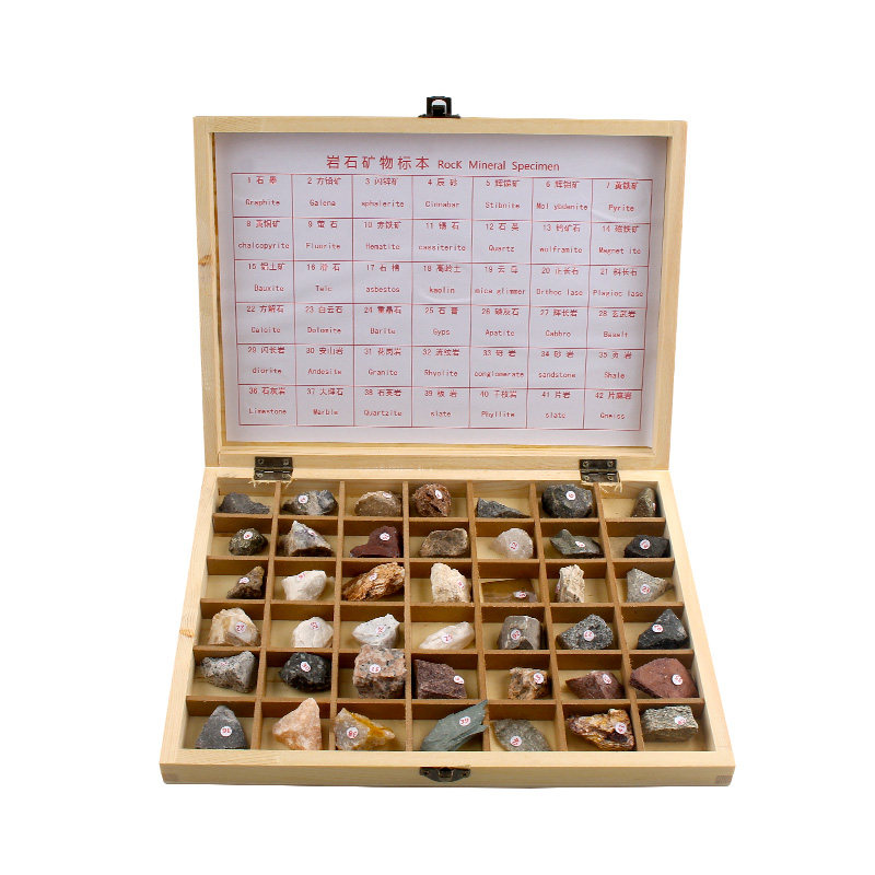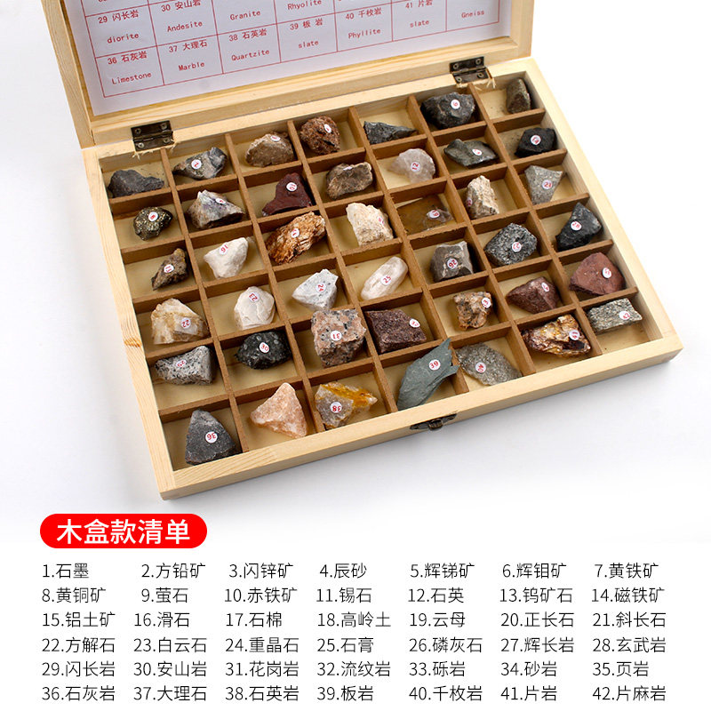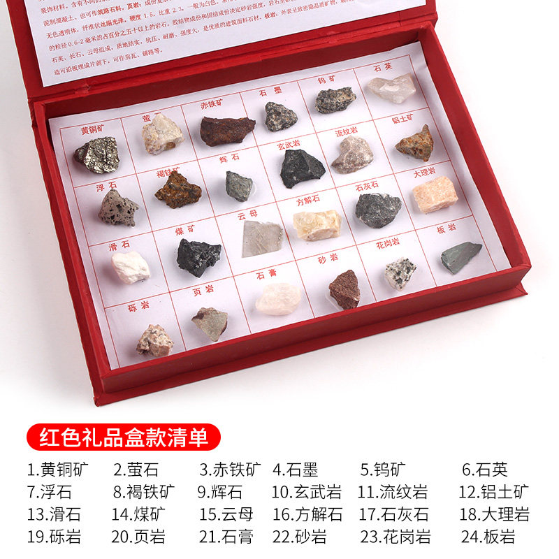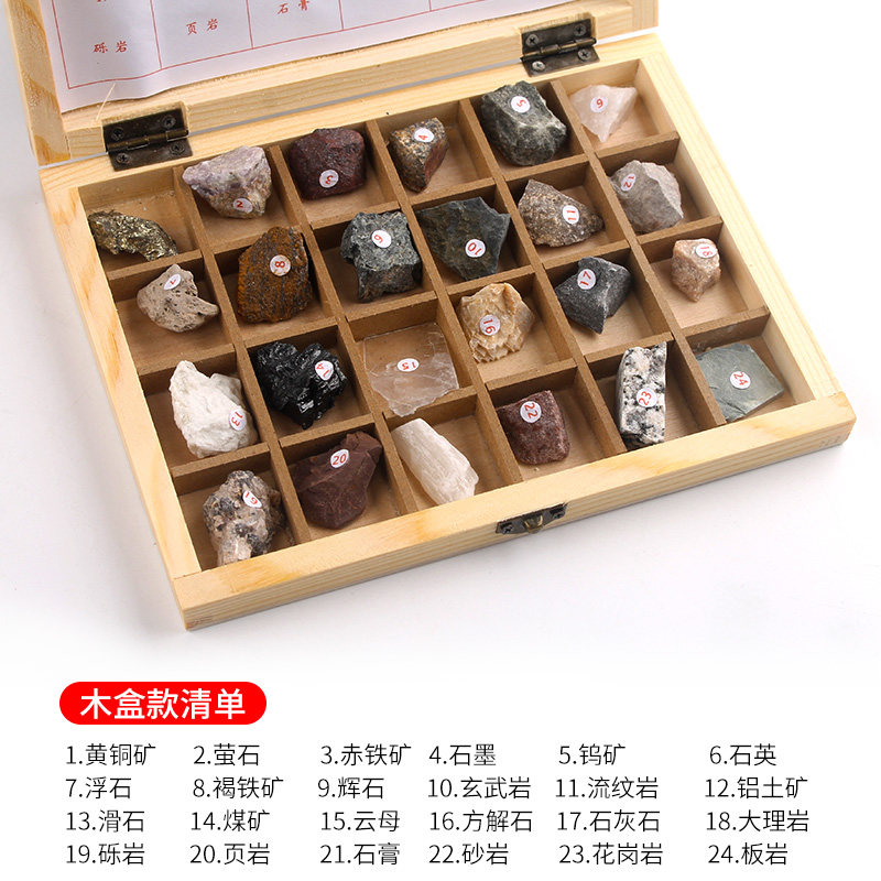 Mineral rock petrochemicals stone specimens Primary school fourth grade science experiment 24 kinds of rock specimens Primary school science Natural geography geology Ore science display Ore teaching experimental equipment J401