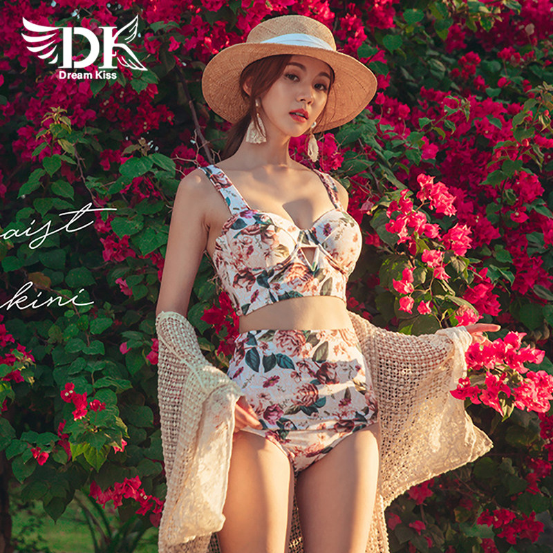 DK Swimsuit 2022 new sexy broken flower net red in swimsuit is slim shade two pieces of bikini