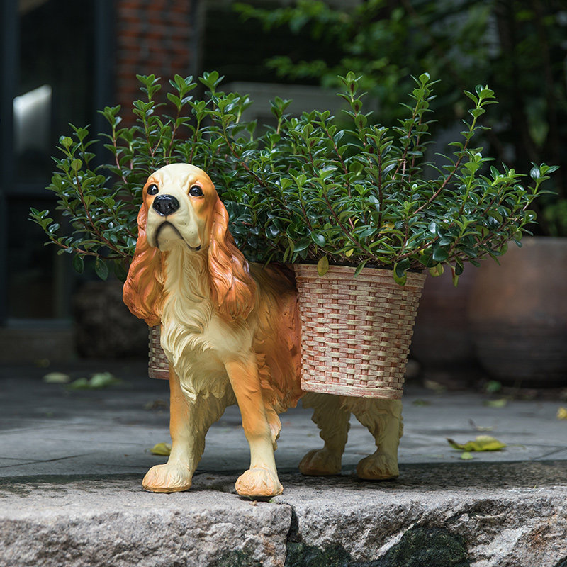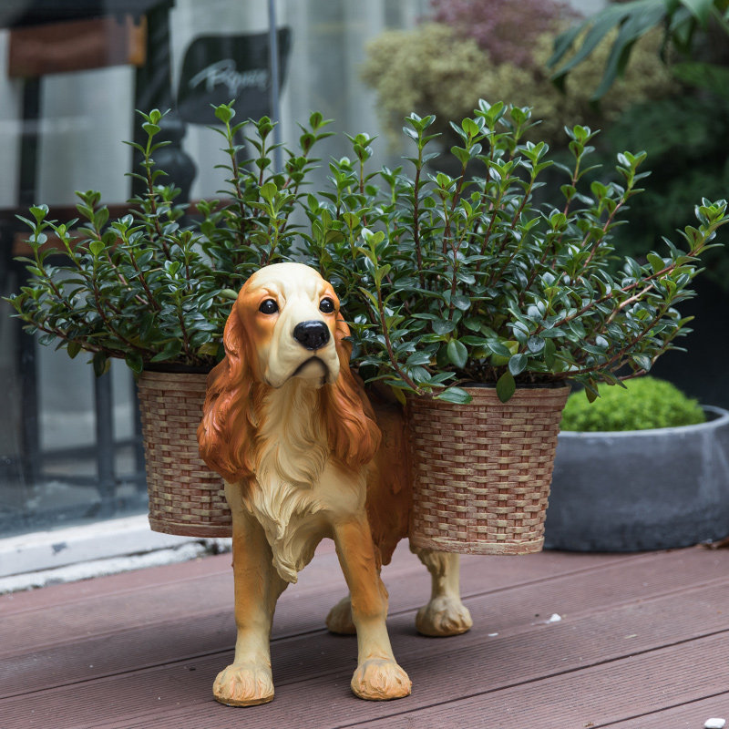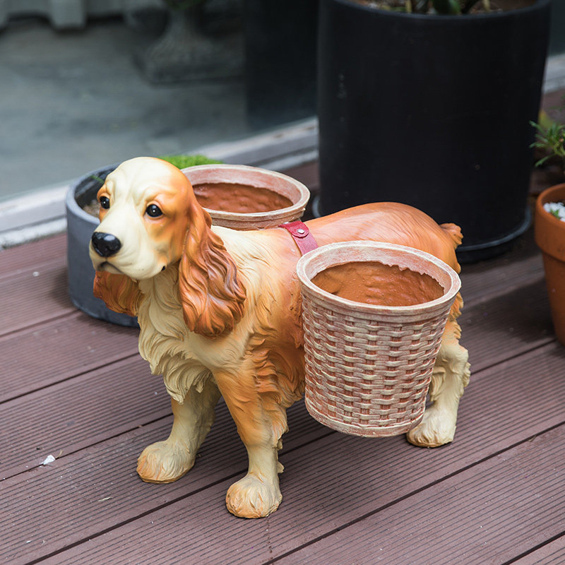Home beautiful creative flower pot ornaments European living room decoration Resin dog floor-to-ceiling flowers A few flower racks Home furnishings