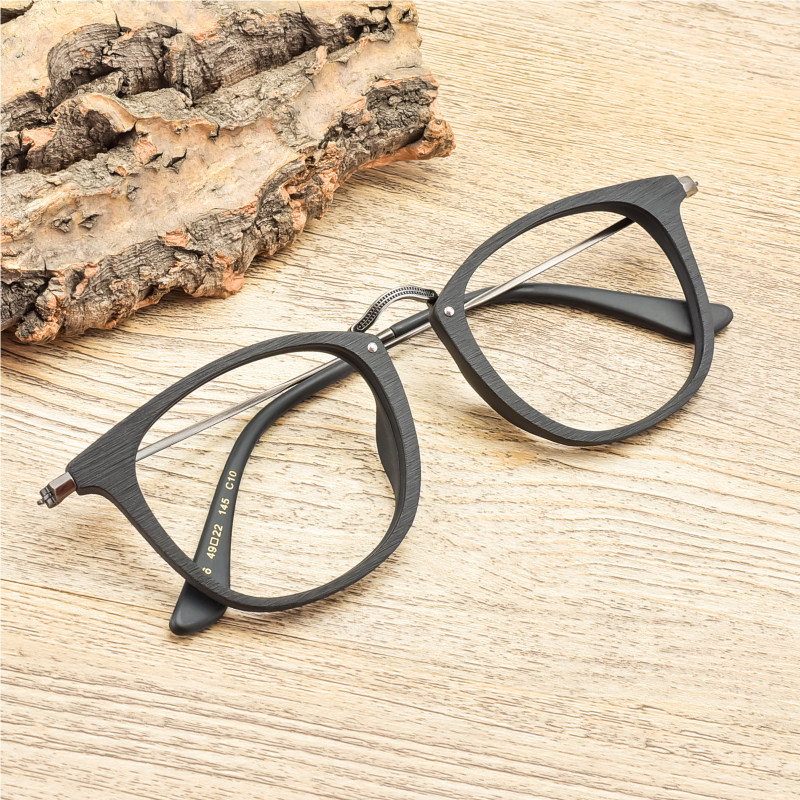 Retro Eye frames Men's frame Korean version black frame wood full frame plate flat light round face Myopia Net Red