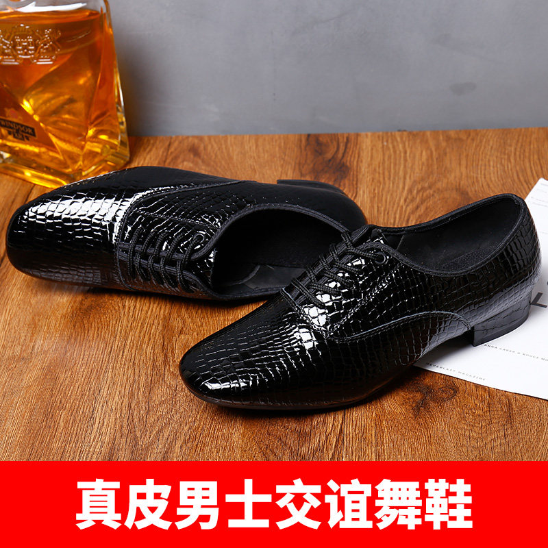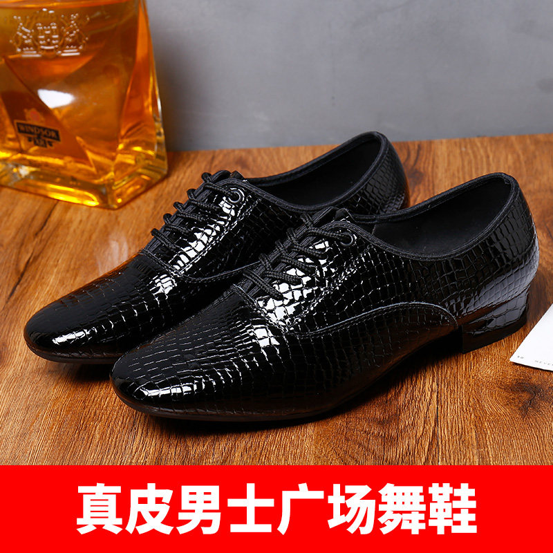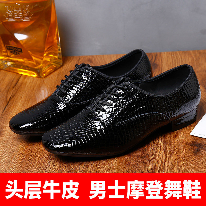 Modern dance shoes men leather soft soles dance shoes men bull skin adult leather skin square dance shoes