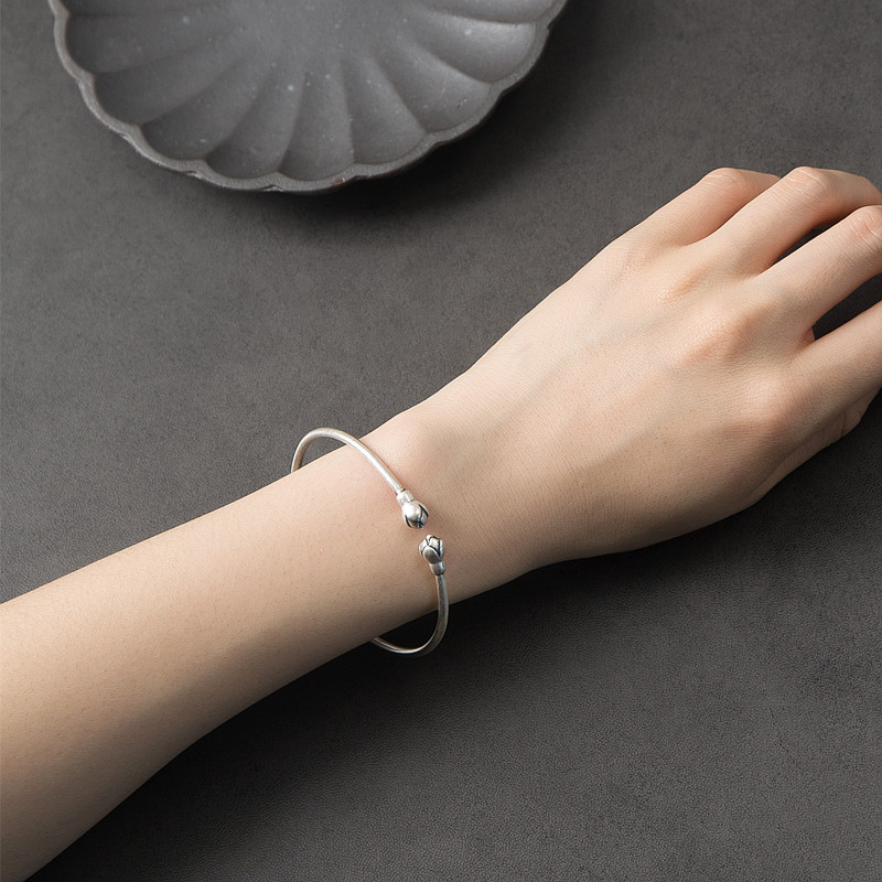 Small River Ripple Foot Silver 990 Lotus Seed Opening Handcrafted Fine Bracelet Bracelet Bracelet Lotus Pure Silver Bracelet