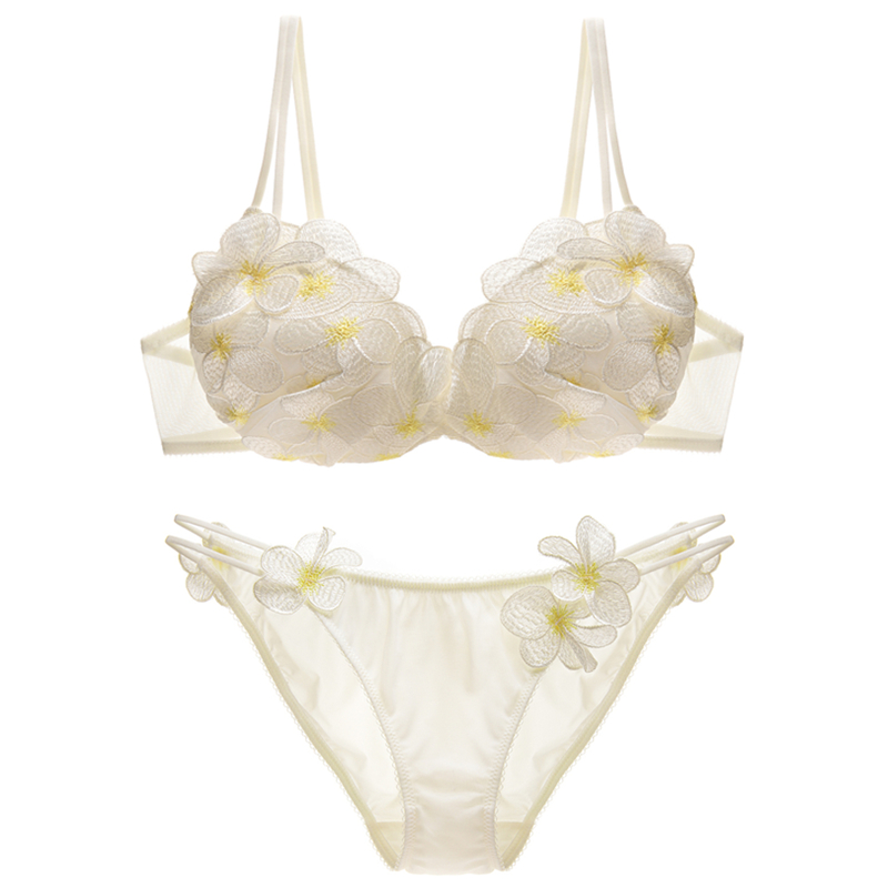 Sunrise original D petal series heavy industry Seiko embroidery girl fresh and sweet steel ring thin cup underwear set