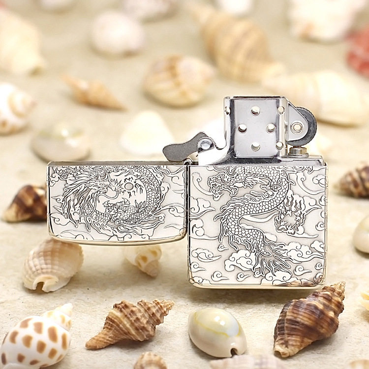American zippo lighter 1941 version 23 pure silver finely carved flying dragon in the sky-Xiang Yunlong