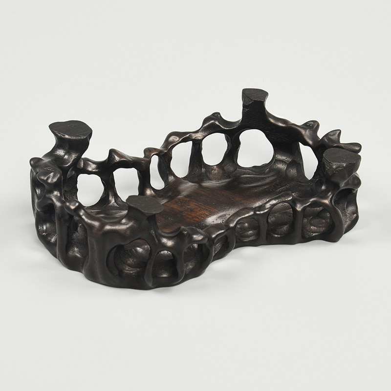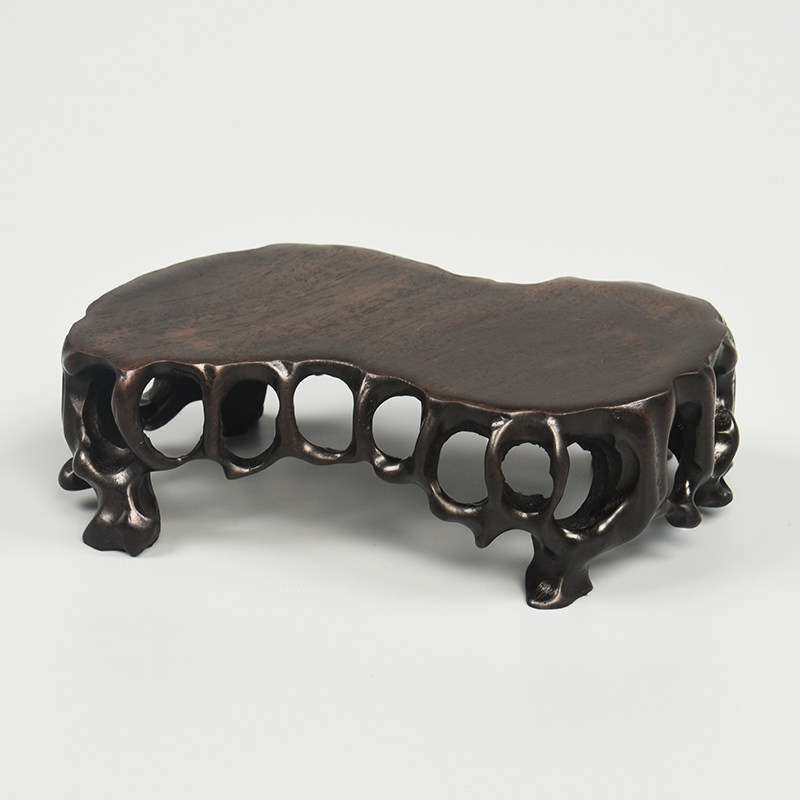 Solid wood carving ornaments crafts vase teapot bonsai antique stone base jade incense burner oval bracket