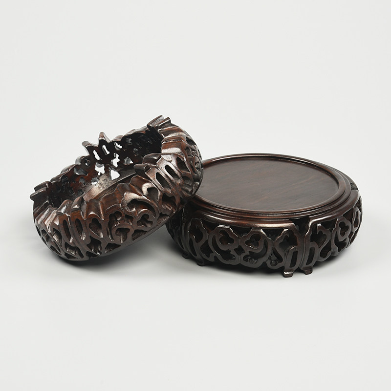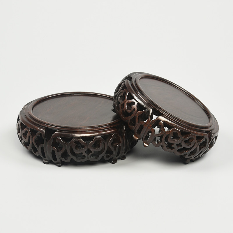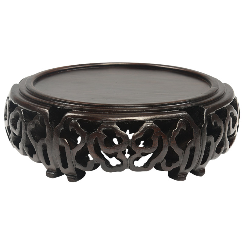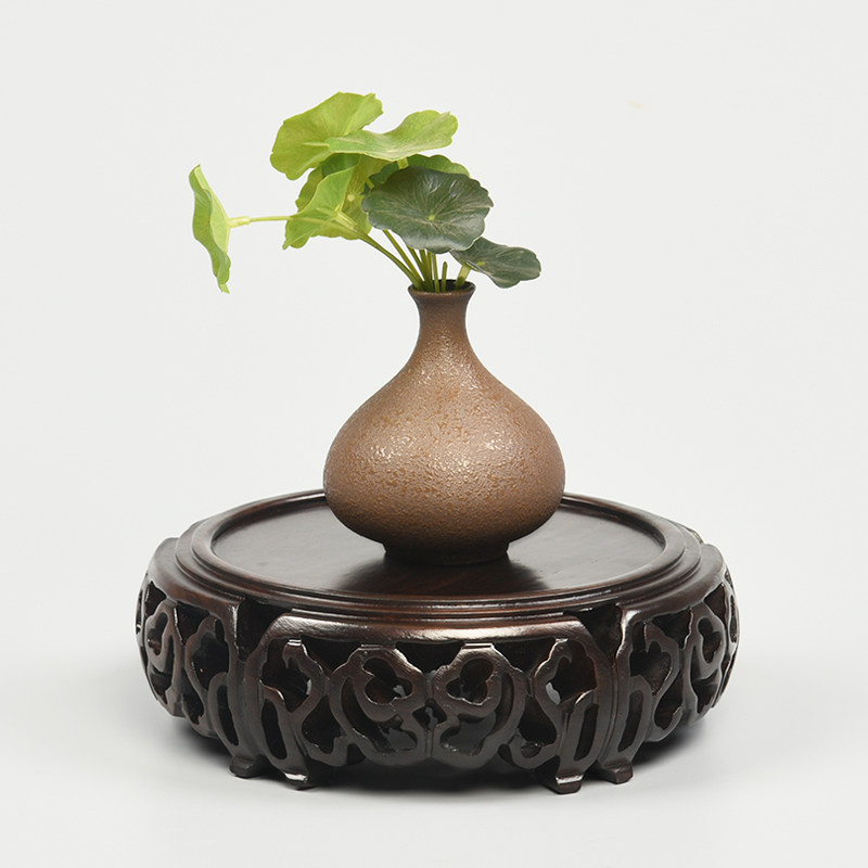 Mahogany round purple sand pot stone Buddha statue vase basin base ebony wood ornaments crafts strange stone solid wood bracket