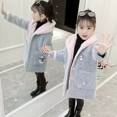 Girl mink velvet coat 2021 new foreign school children's autumn and winter clothes thick girl wool coat