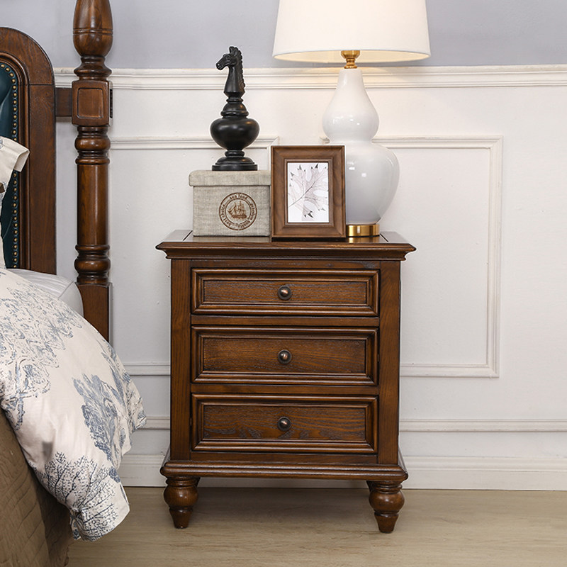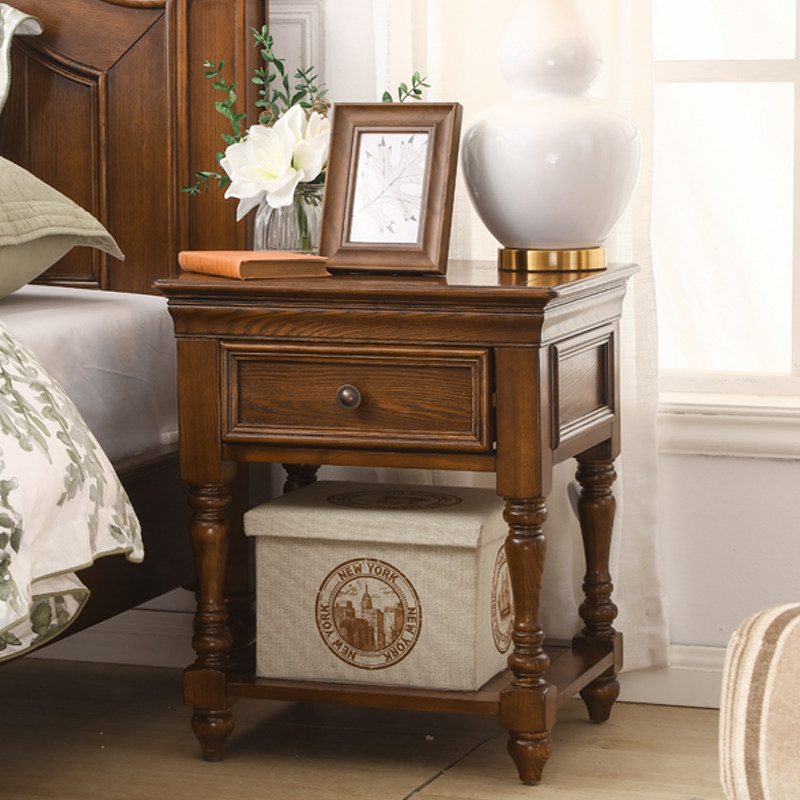 American bedside table solid wood furniture bedroom with drawer storage cabinet retro European bedside cabinet ash wood side cabinet
