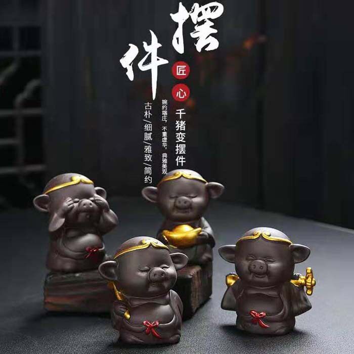 Fish tank landscaping purple sand ceramic Qitian Dasheng Wukong Sun monkey pig Bajie tea play boutique tea pet tea table decoration
