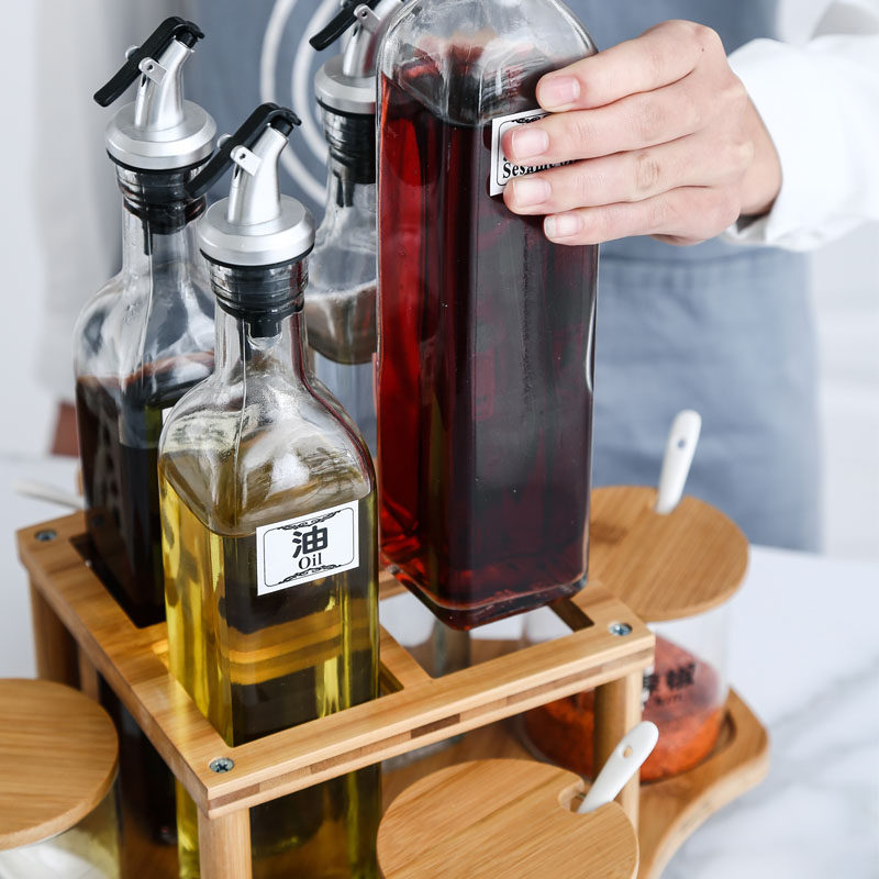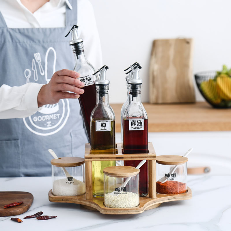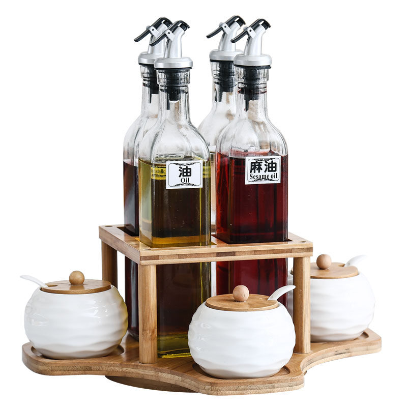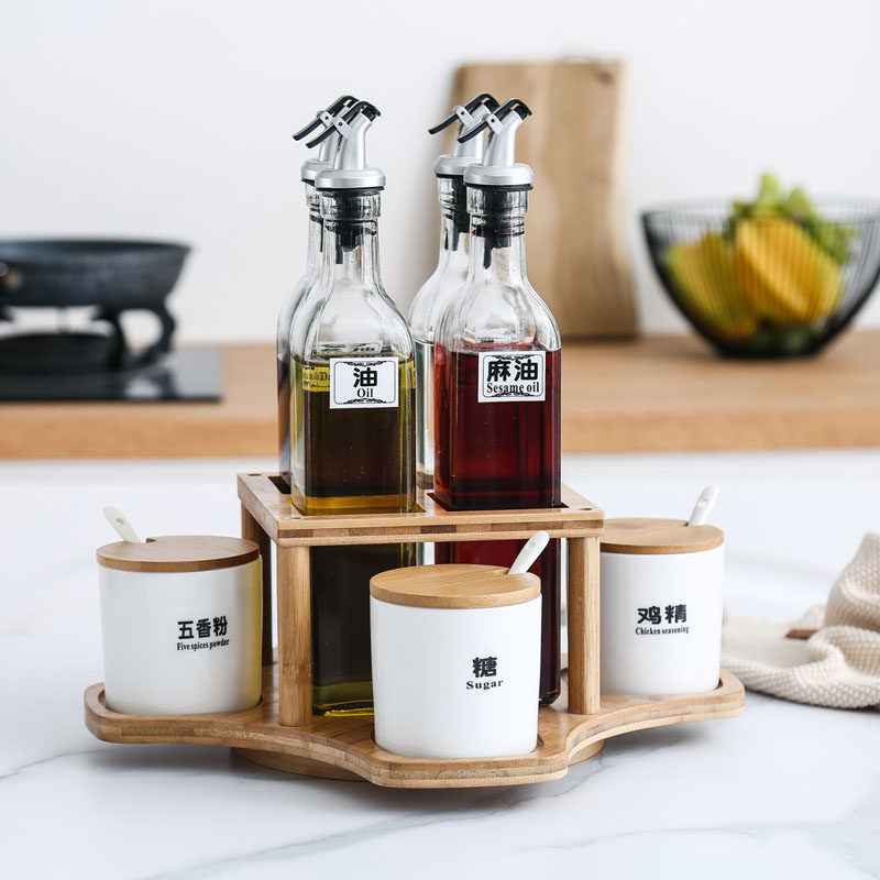 Ceramic seasoning pot household kitchen glass salt sugar seasoning box oil bottle oil pot combination set seasoning bottle can be rotated