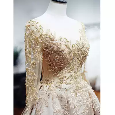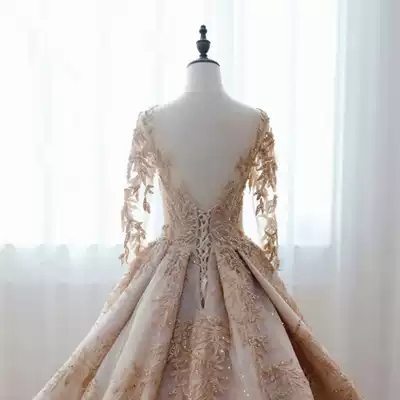 Long-sleeved light wedding dress female 2021 new bride wedding fantasy tailoring heavy industry French forest Hepburn simple summer