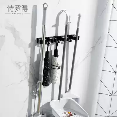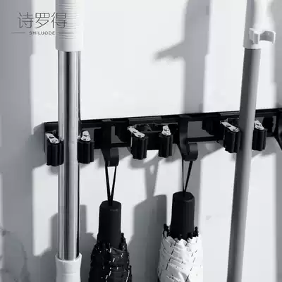 Powder room black mop hanger broom Wall mop clip rack balcony adhesive hook storage layer rack no holes
