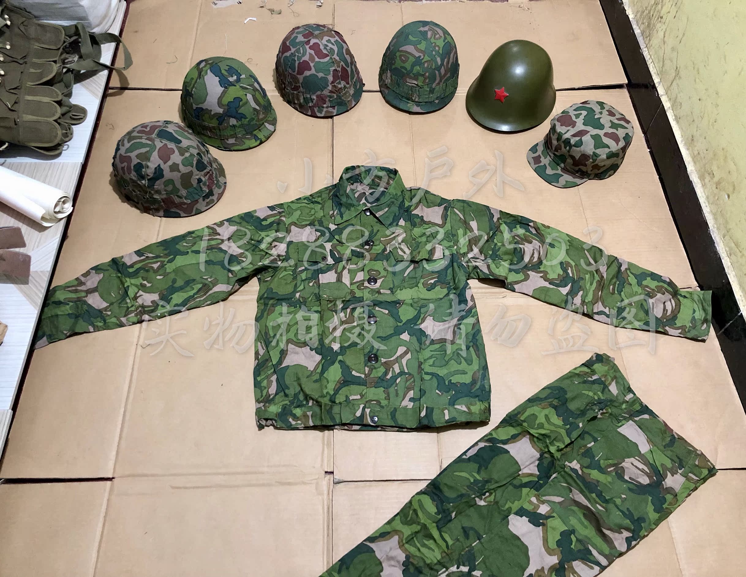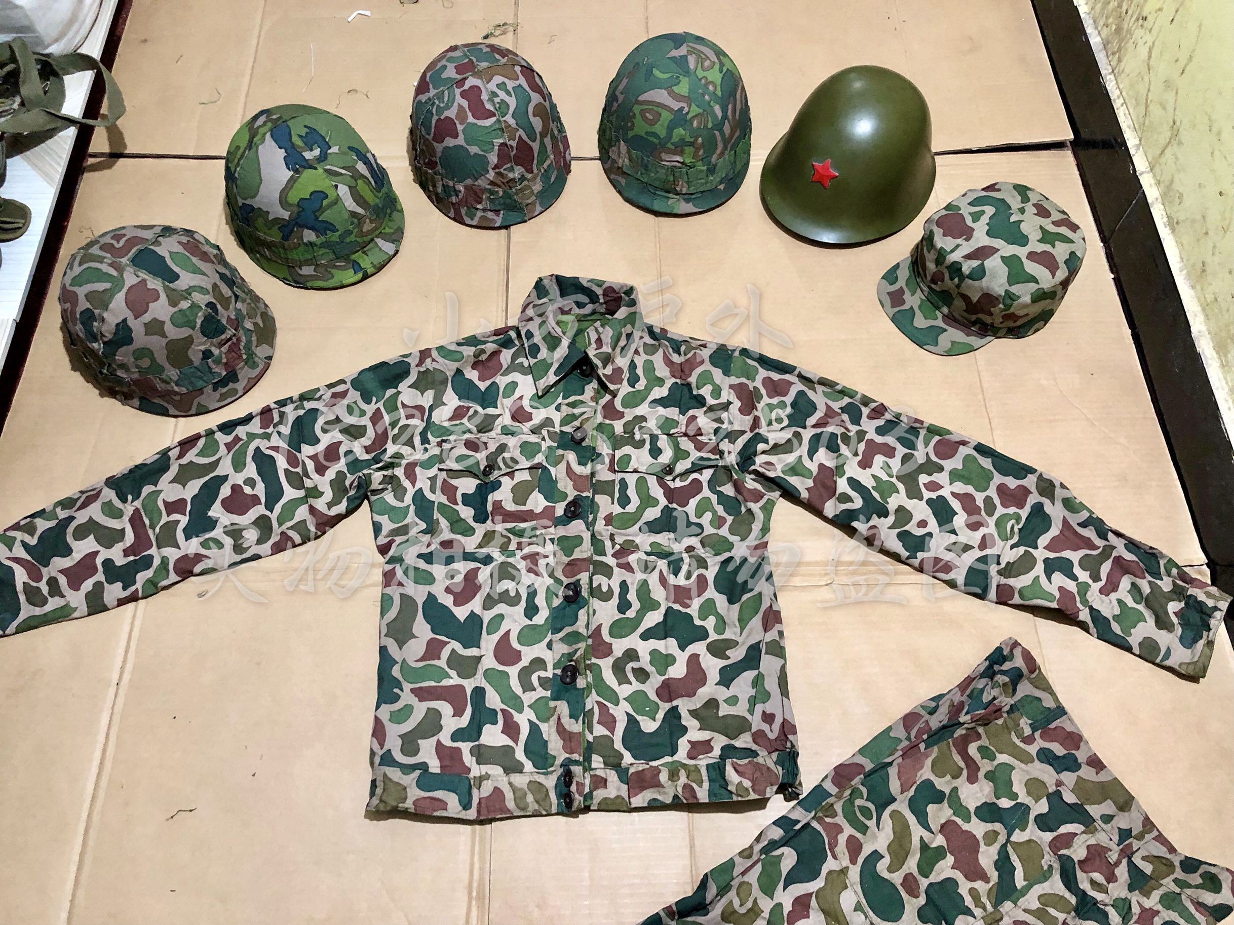 Early large five-leaf double-sided camouflage camouflage clothes 81-81-style double-sided helmet version camouflage clothing with helmet