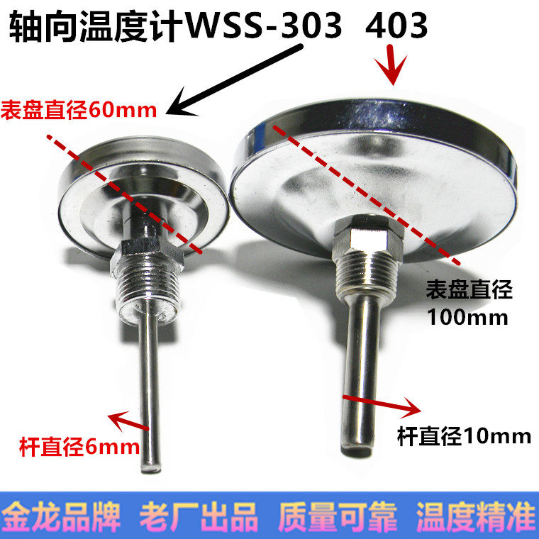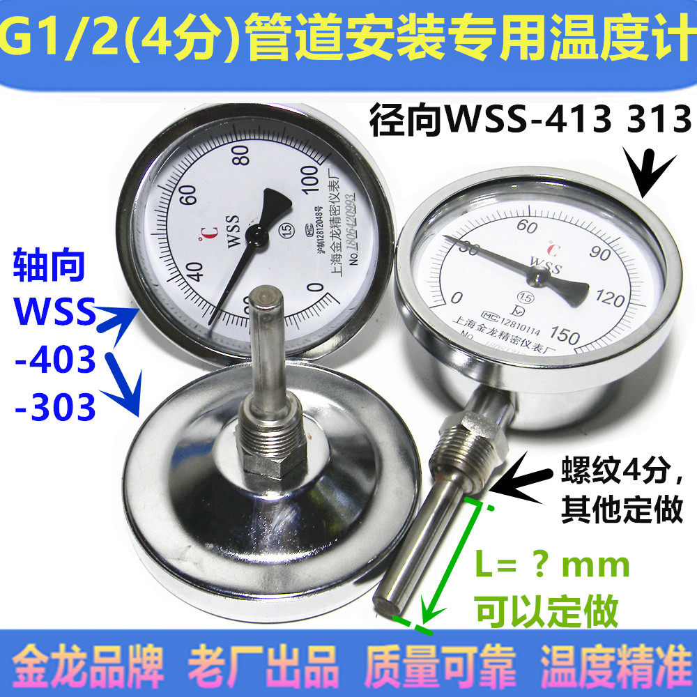 Bimetal thermometer pipe temperature table WSS-413 radial 4 minutes 303313 fixed threaded gold dragon